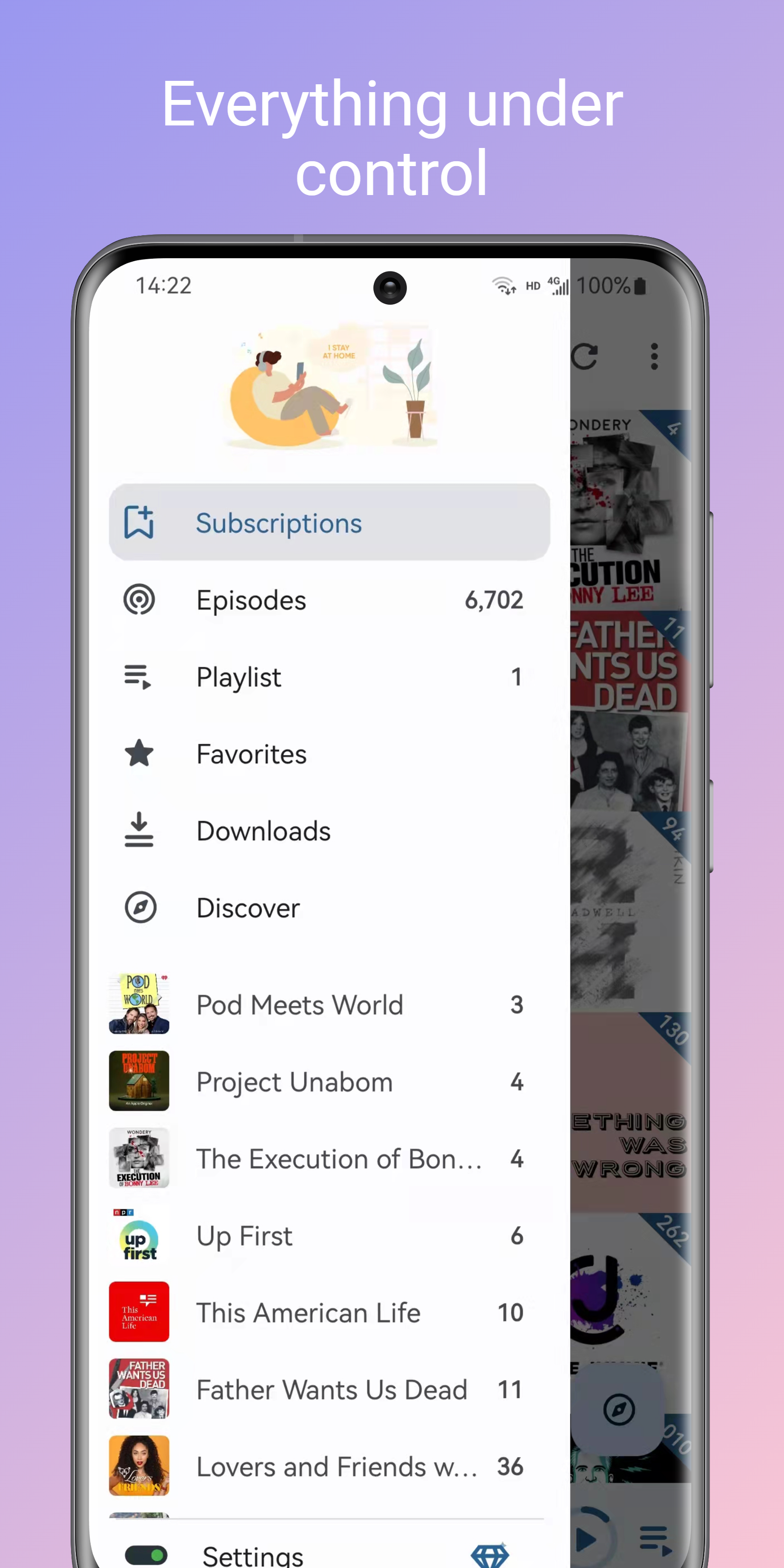 - Auto-update podcasts with customizable update frequency, set specific times, download your favorite podcasts before waking up