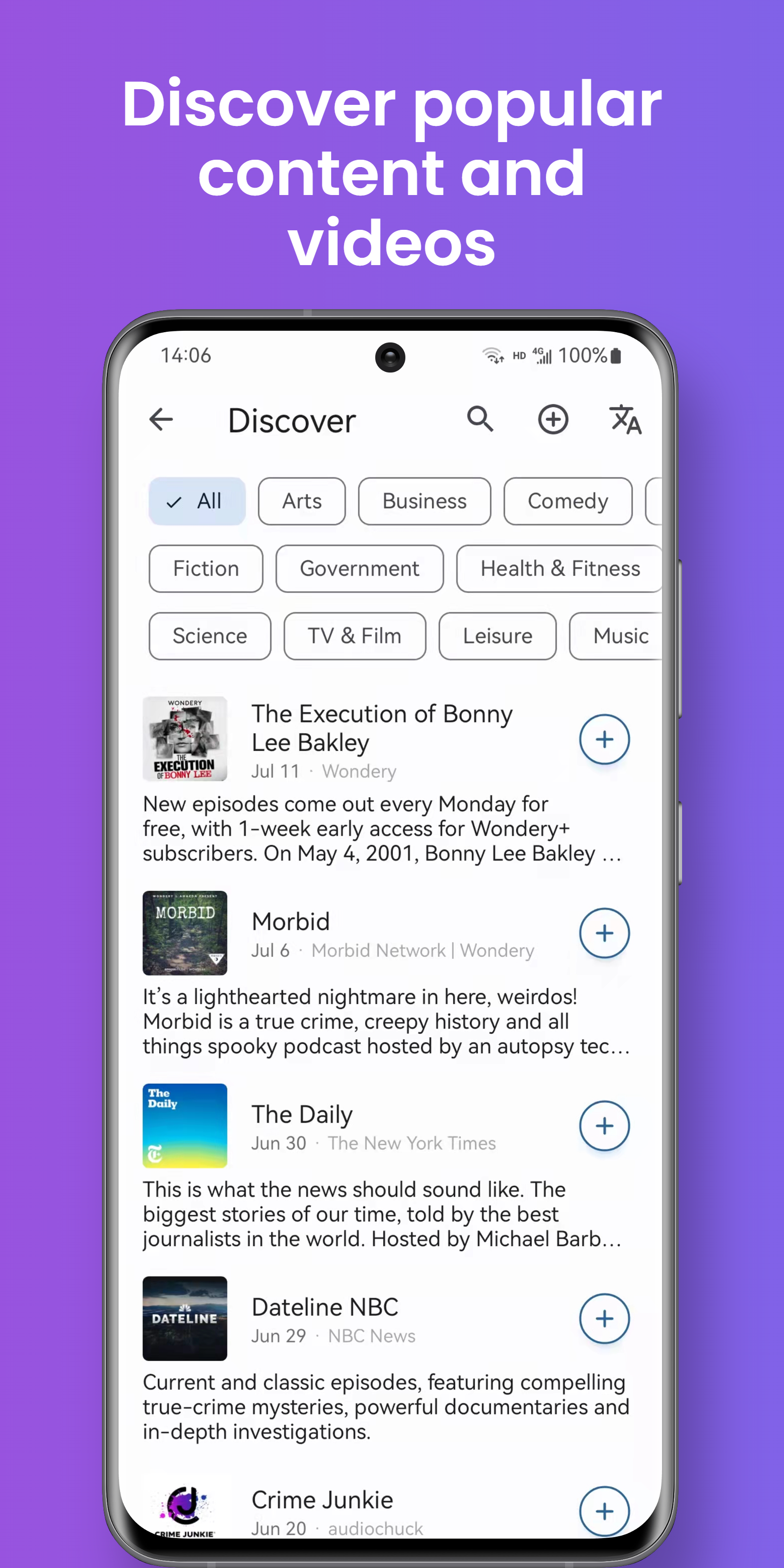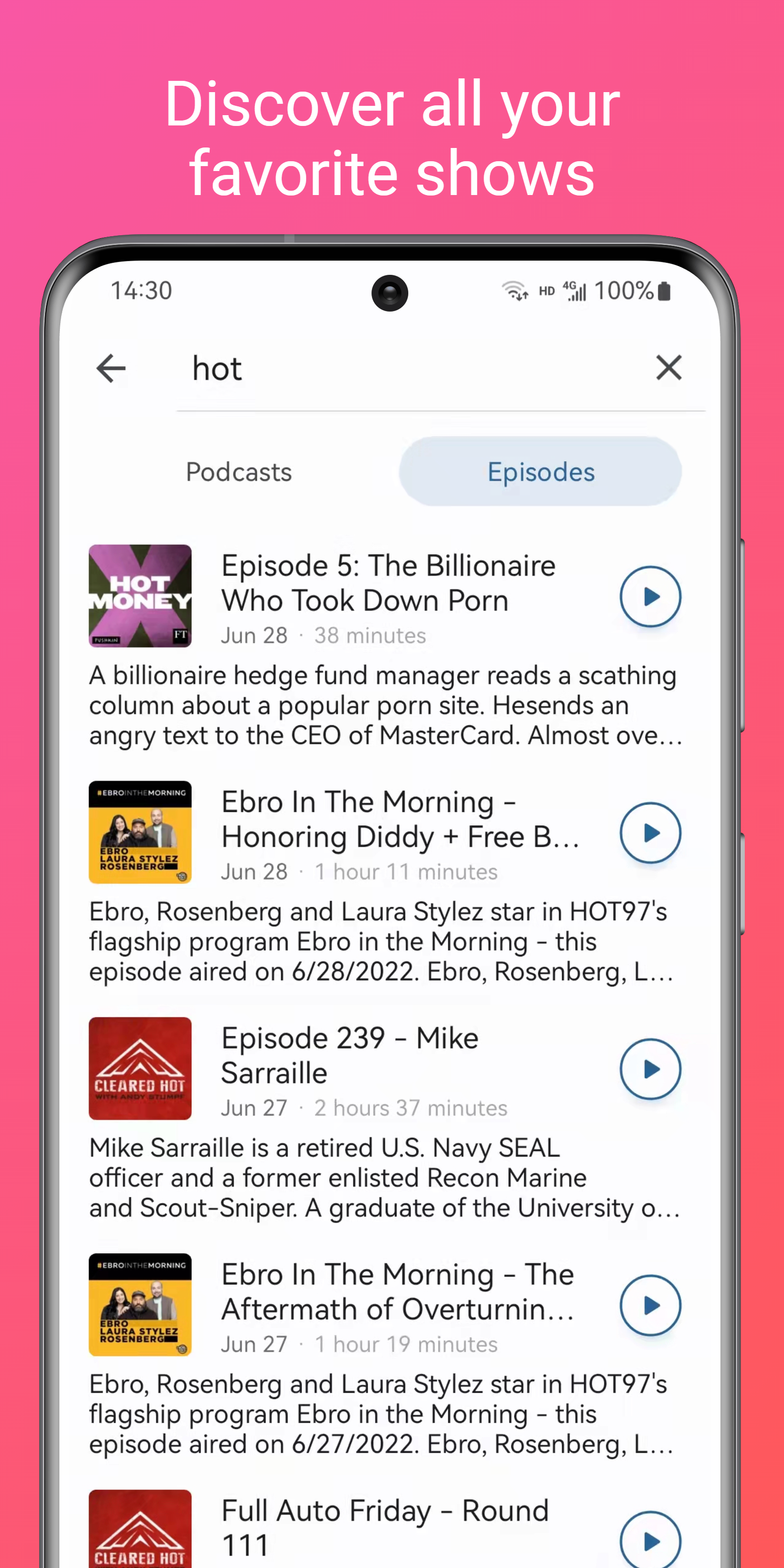 - 🔍 Powerful search engine to find various channels and episodes, always discover your favorite fresh audio content