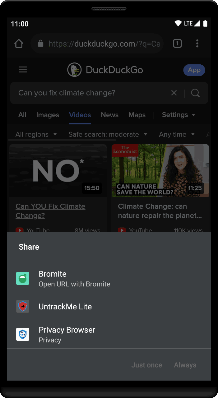 - When sharing a Twitter, YouTube or Google Maps link just pick up UntrackMe to transform it before sharing it with another app.