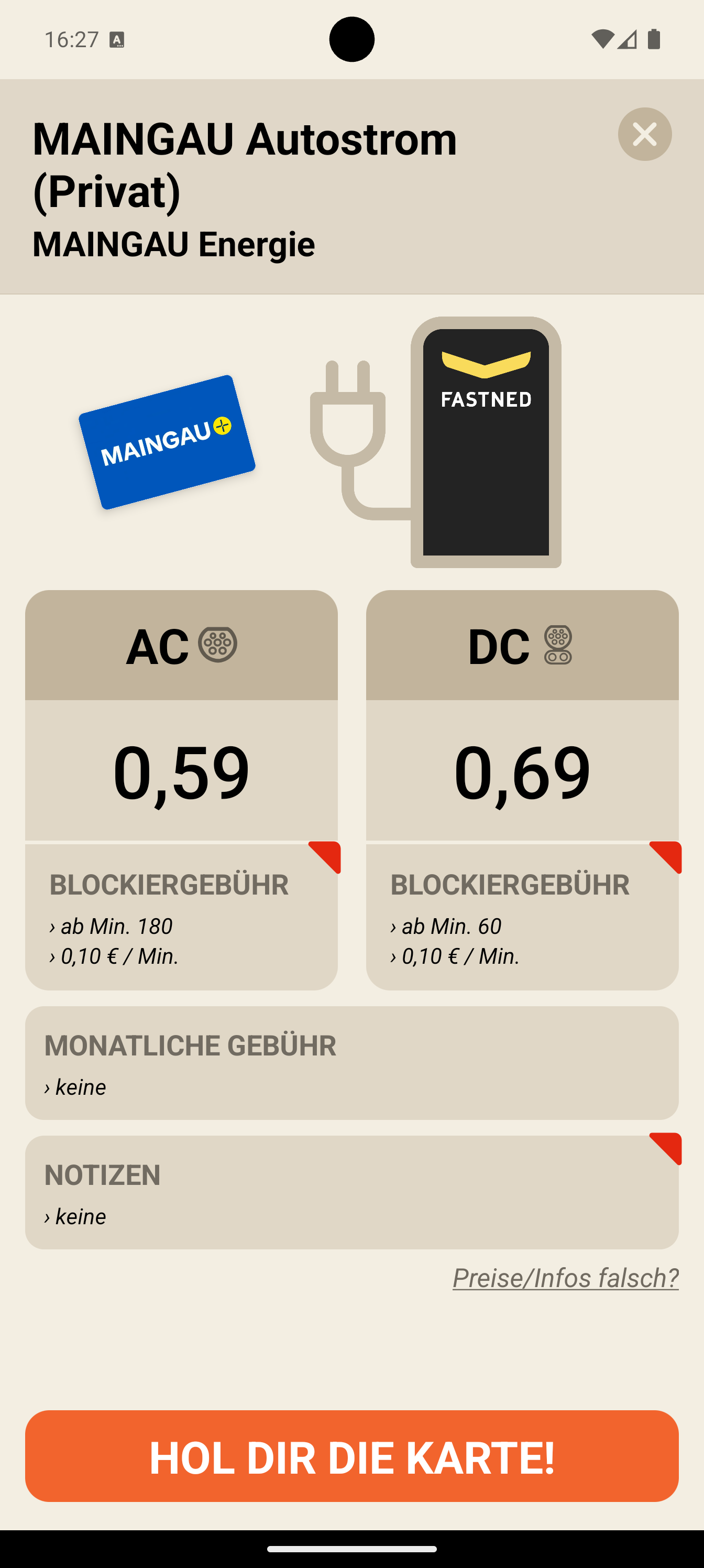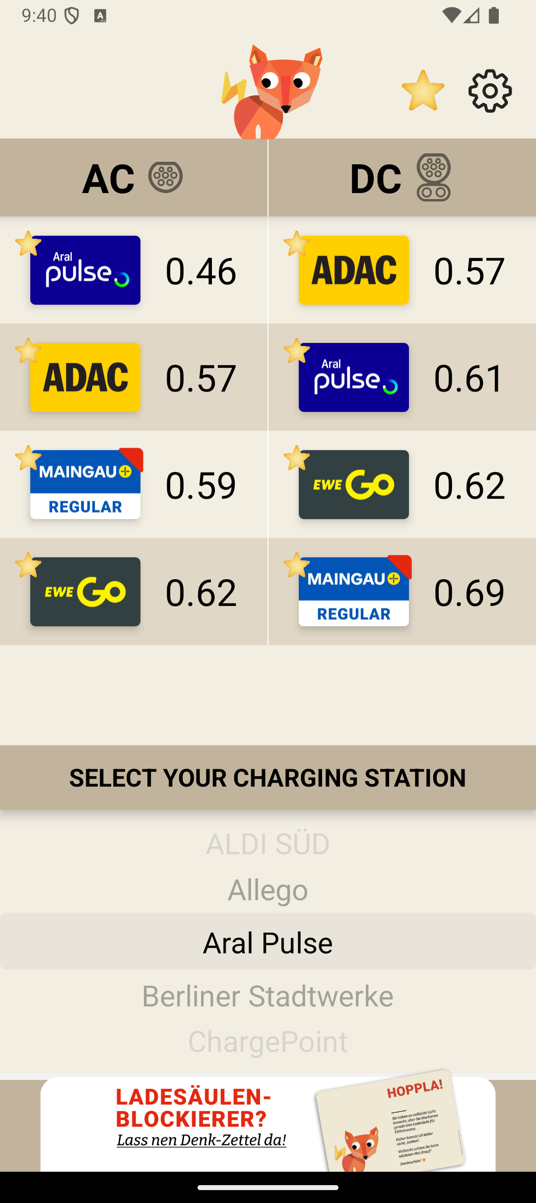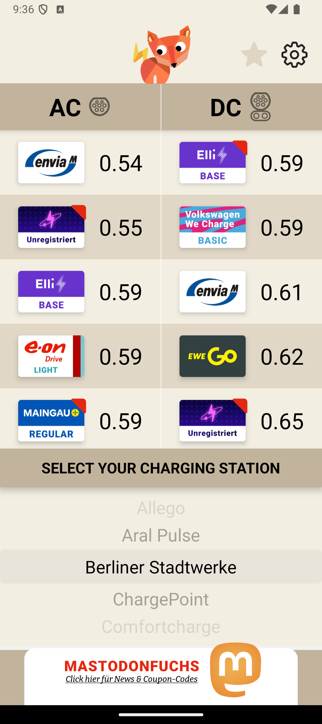 With just one finger swipe, Ladefuchs shows you the cheapest charging plan at the charging point.