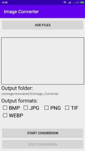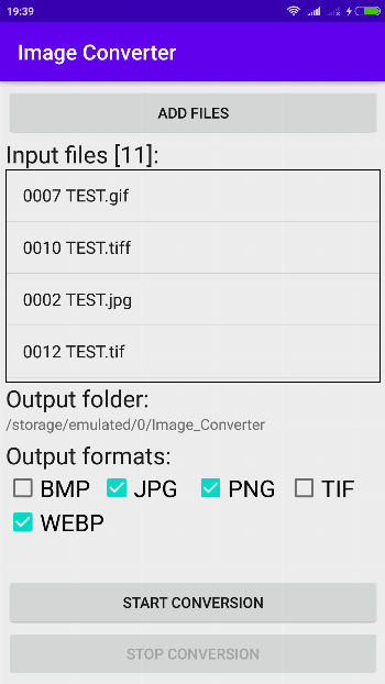 App enables users to convert various image files into file type of their choice. Both file by file and batch importing/exporting are supported. Supported formats: BMP, GIF, JPG, PNG, TIF, WEBP.