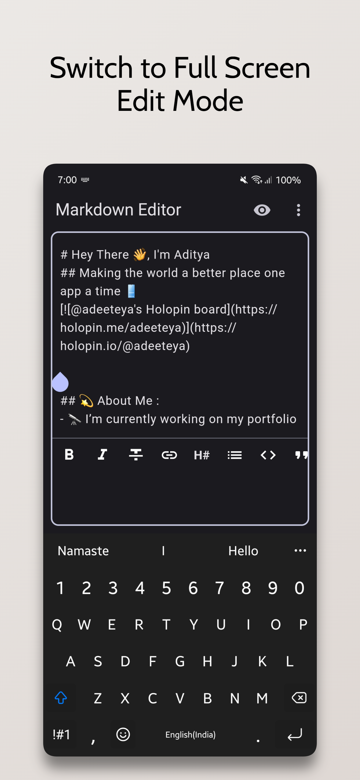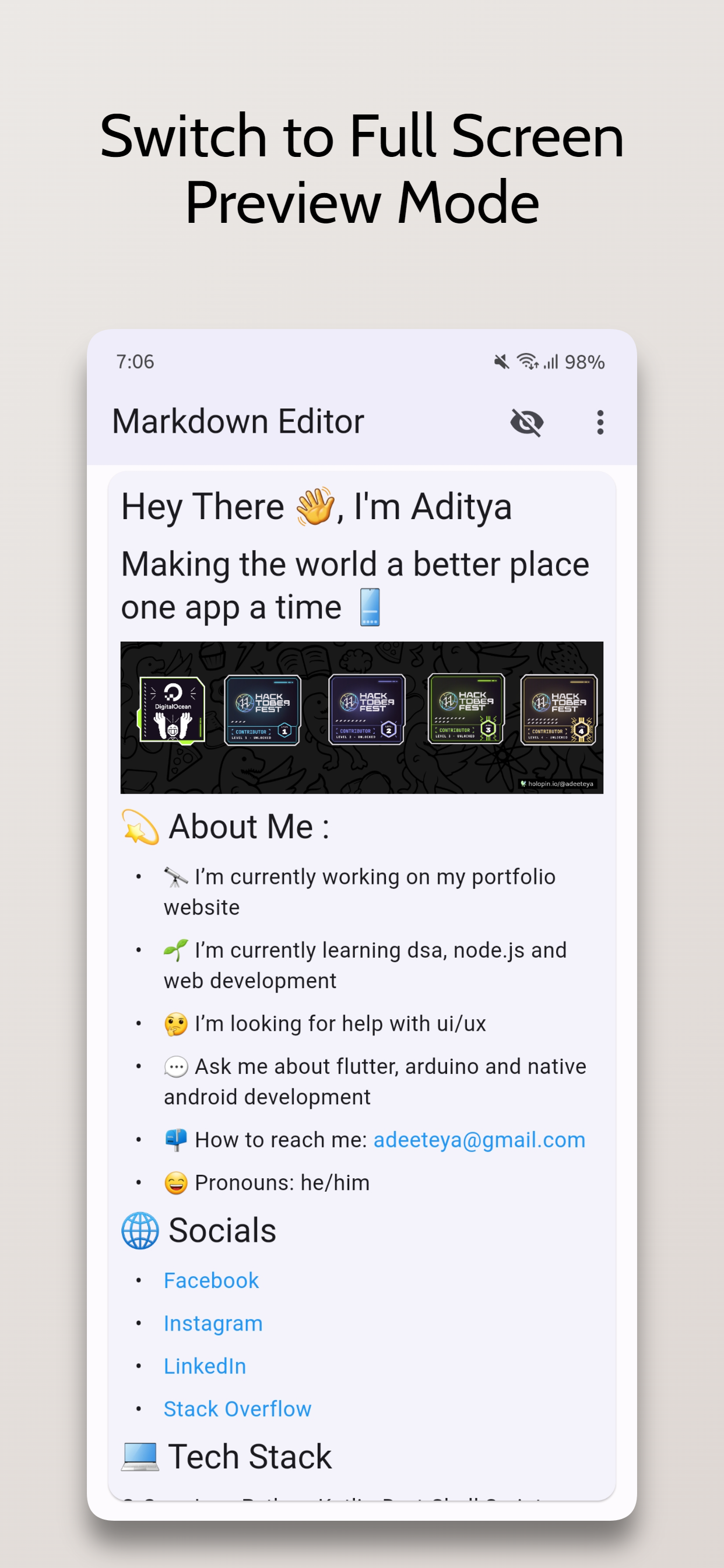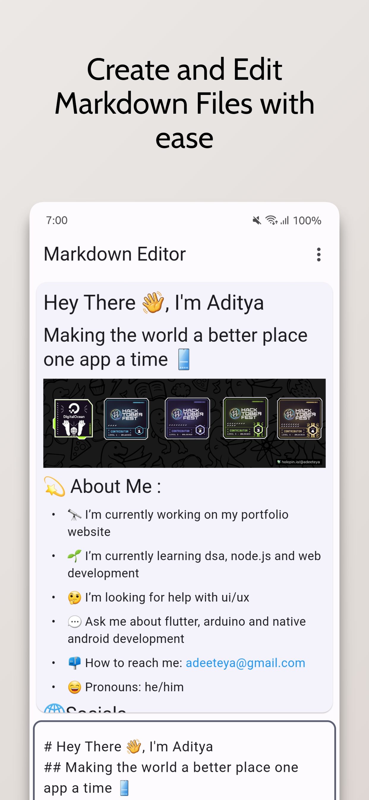 This Editor was developed using Flutter and is mainly targeted for mobile devices as currently there aren't any standalone markdown editors available.