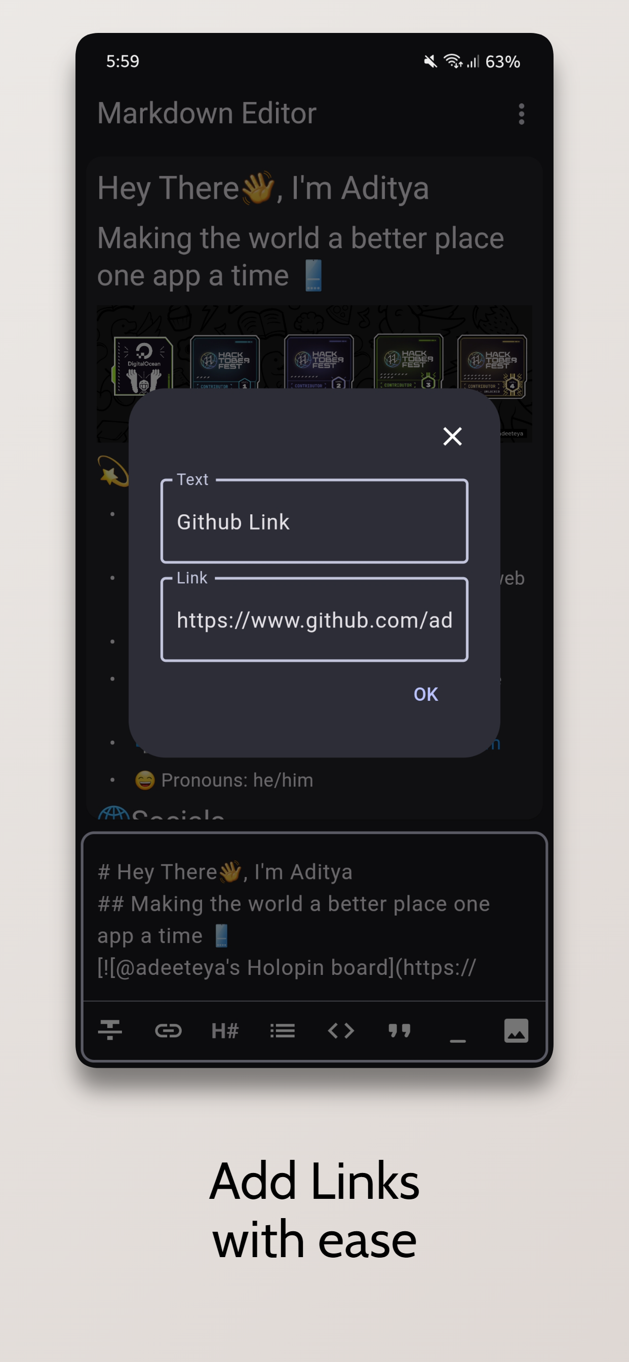 The app also offers a convenient way to style your text with options such as bold, italics, headings, and more. Adding links is also a breeze with the simple interface.