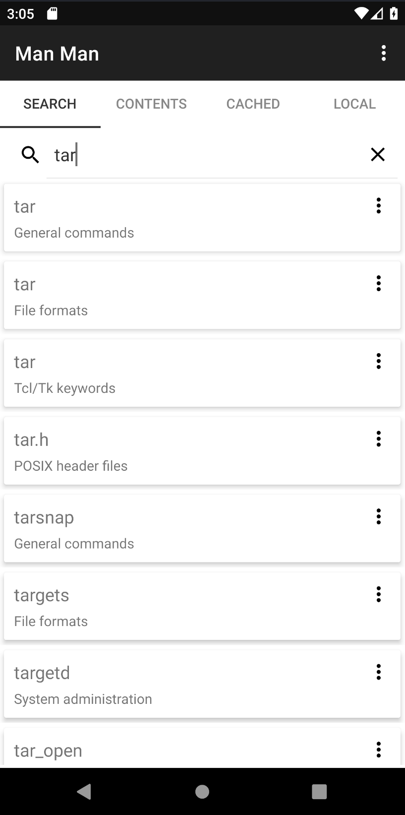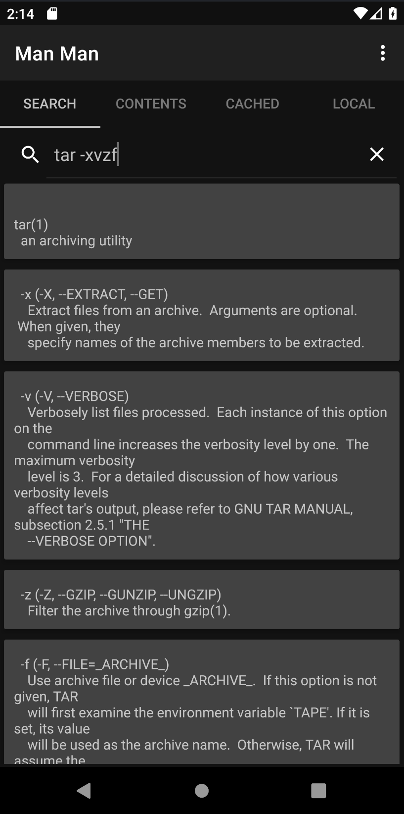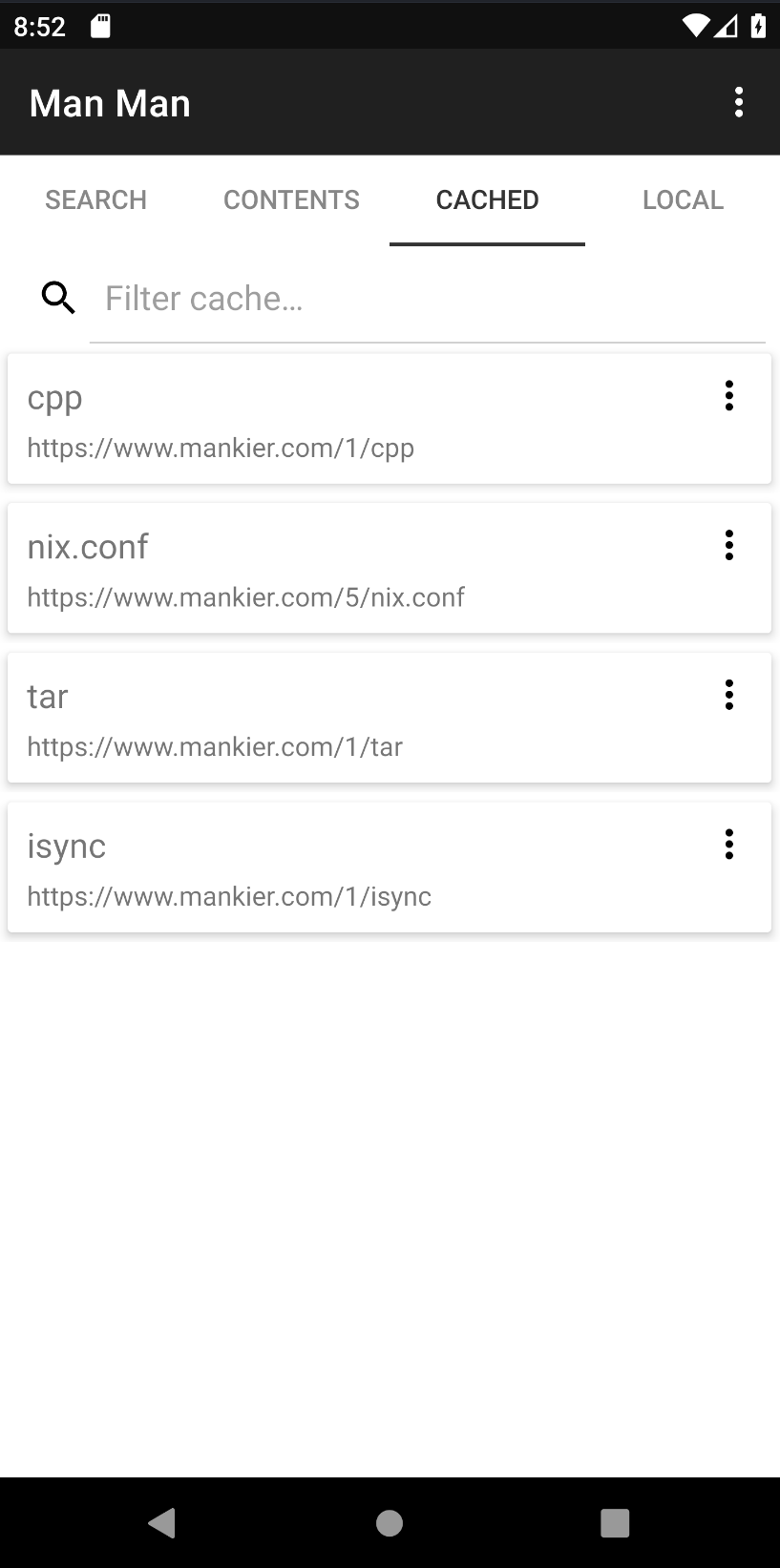 * Supports caching of man pages that were previously accessed