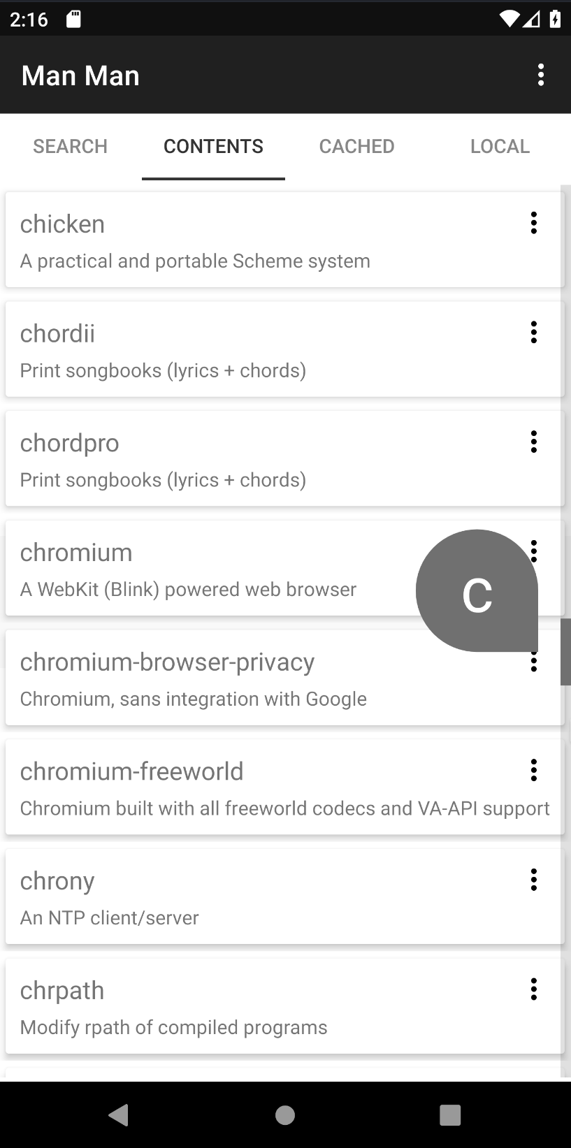 * Supports browsing and indexing of man chapters