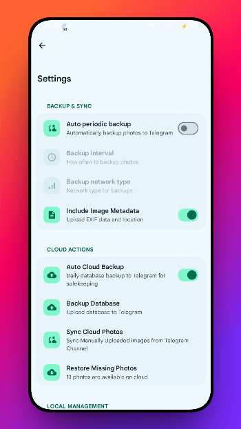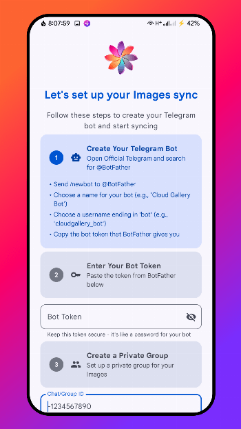 It's surprisingly simple! You create your own Telegram bot (takes 2 minutes with @BotFather), connect CloudGallery to it, and boom! Every photo on your device can be automatically backed up to your personal Telegram channel. It's like having a digital photo curator that never sleeps! 📮