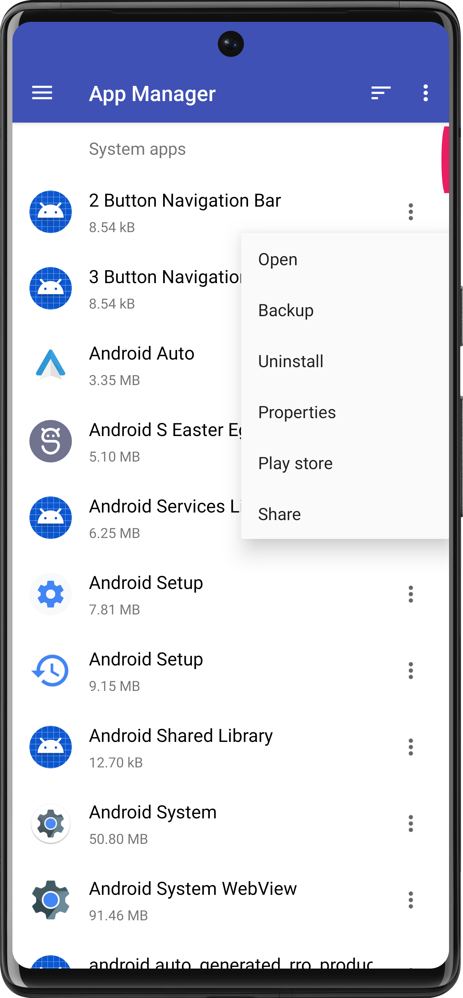 - App Manager to open, backup, or directly uninstall any app