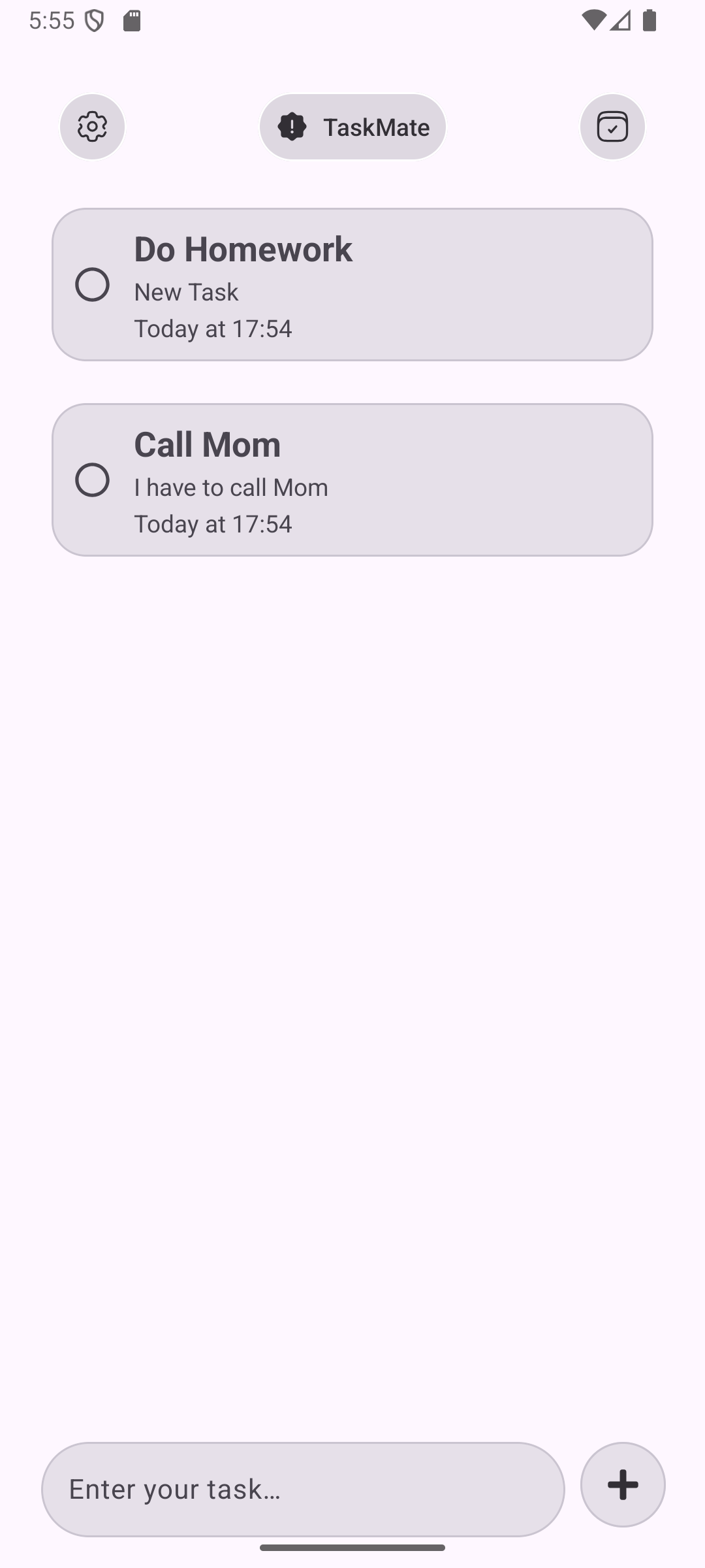 TaskMate helps you stay organized with a clean, minimalistic interface. Features include: • Add, edit, delete, and archive tasks • Auto-sort completed tasks • Beautiful Material Design • Multilingual support (English & Persian) • Dark mode • Swipe actions with animations • Timestamped tasks with smart formatting