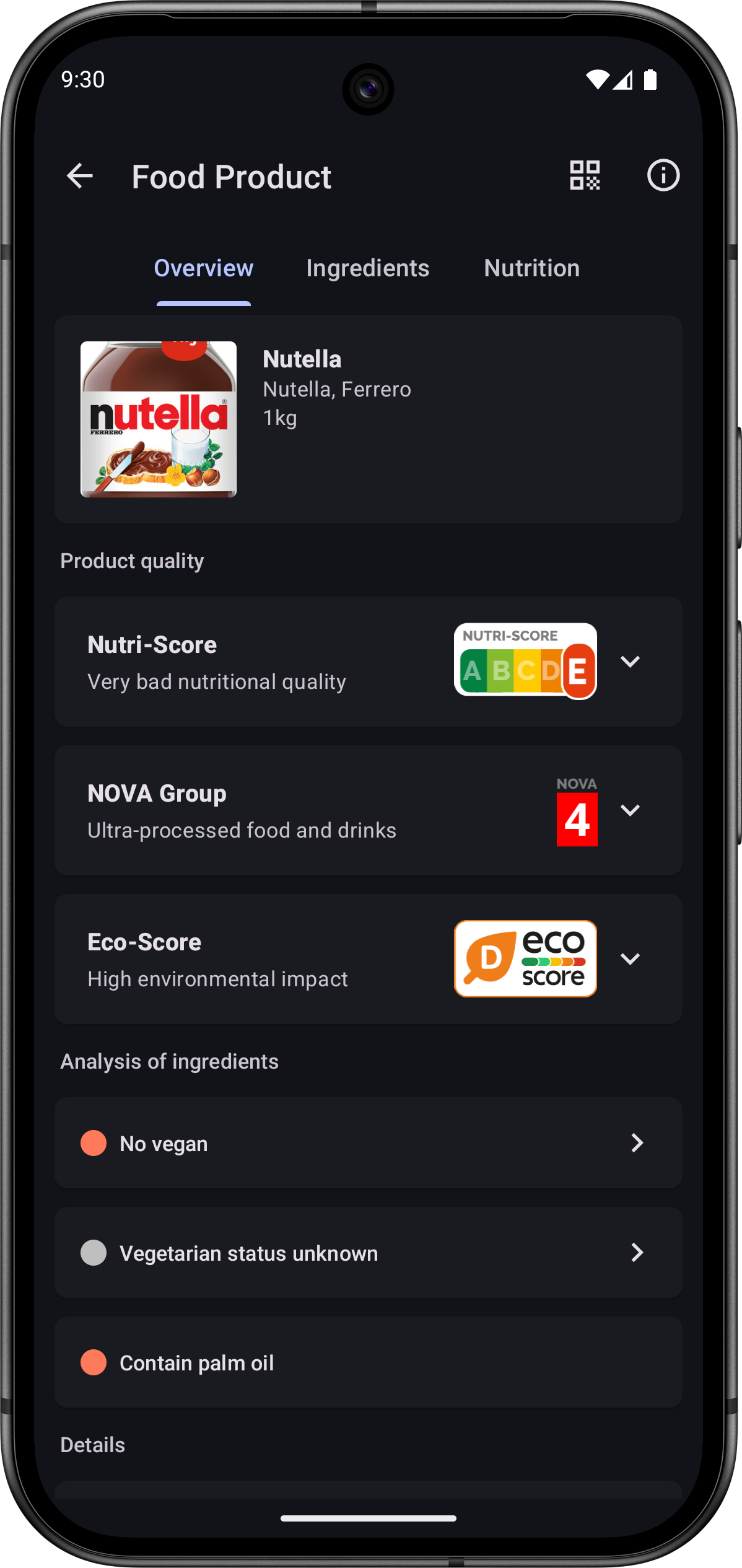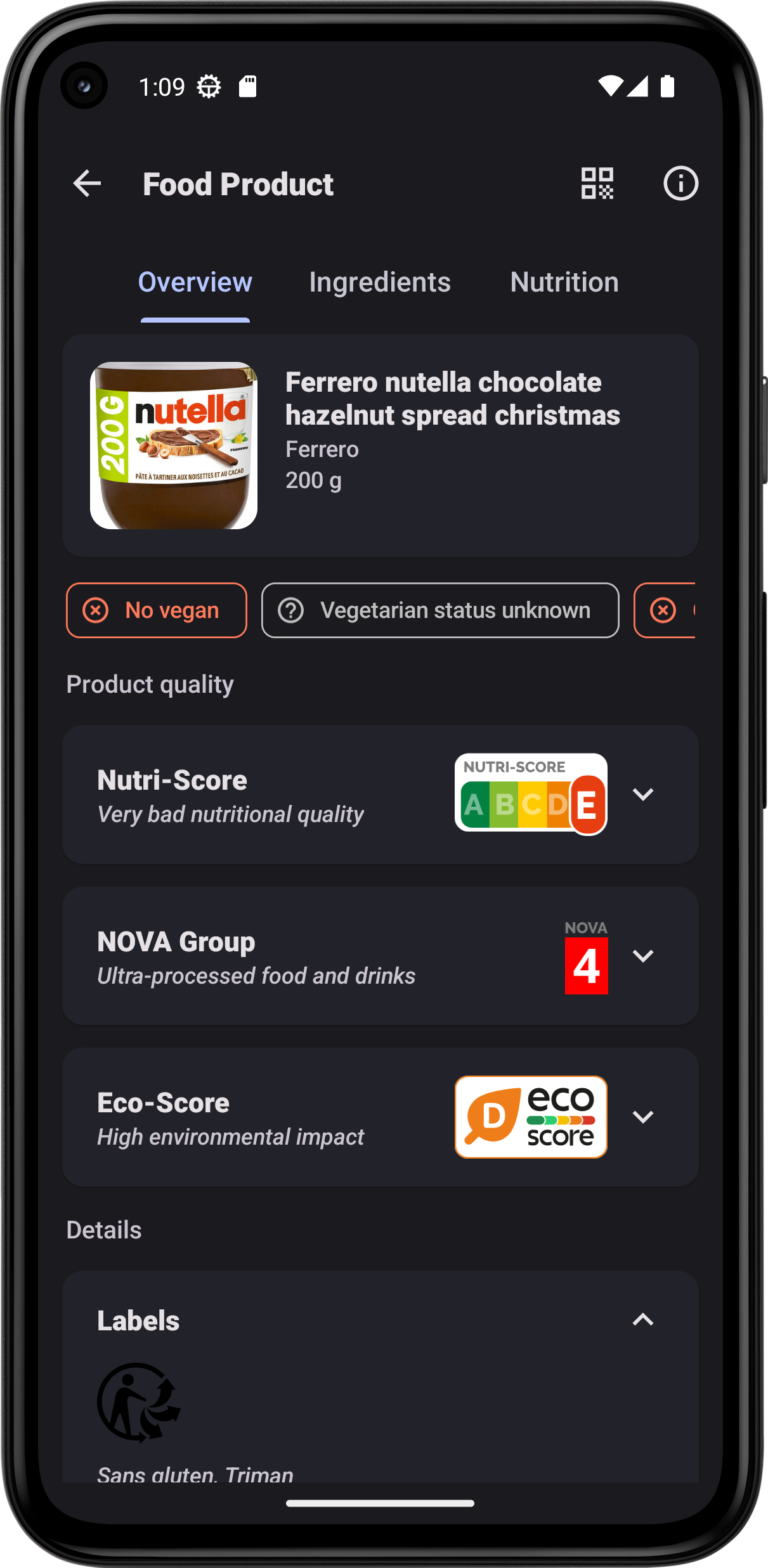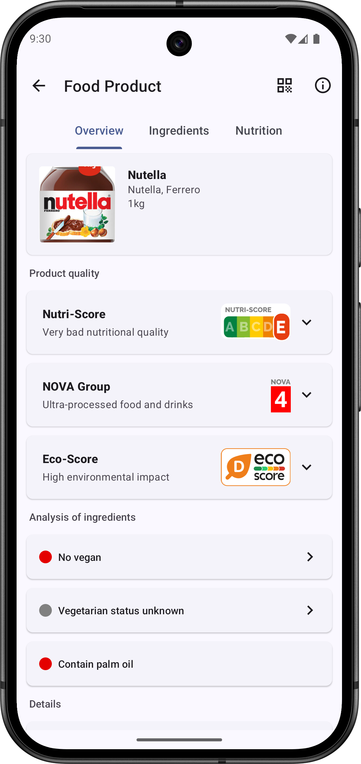 • Scan Food products barcodes to receive information about their composition thanks to the databases Open Food Facts and Open Beauty Facts.