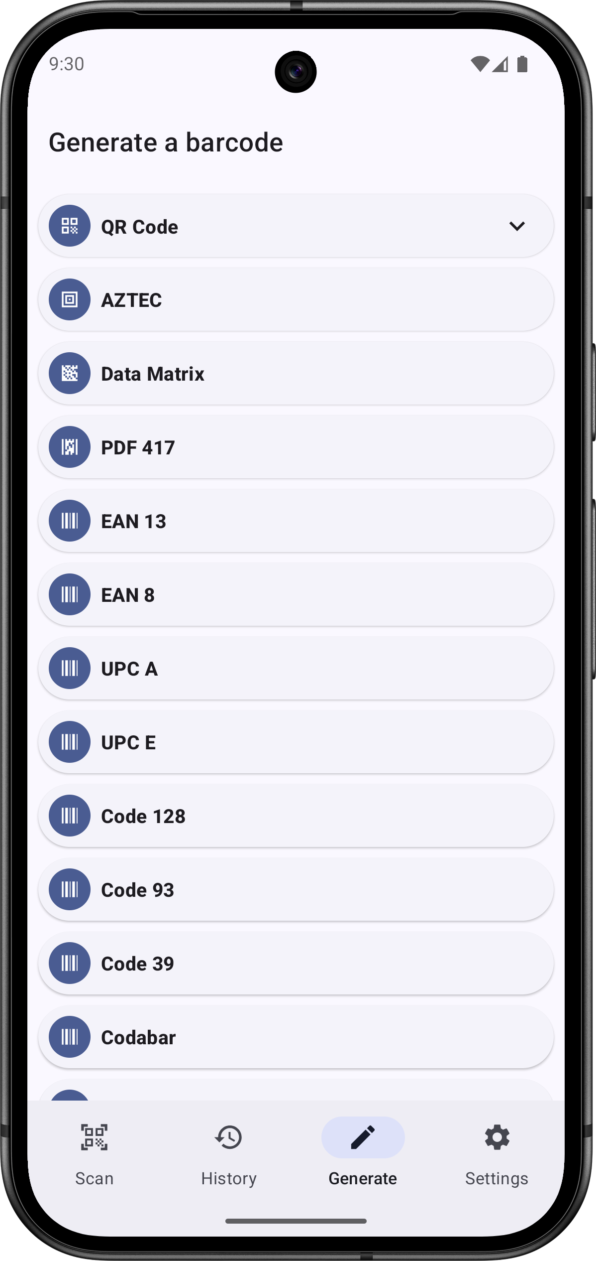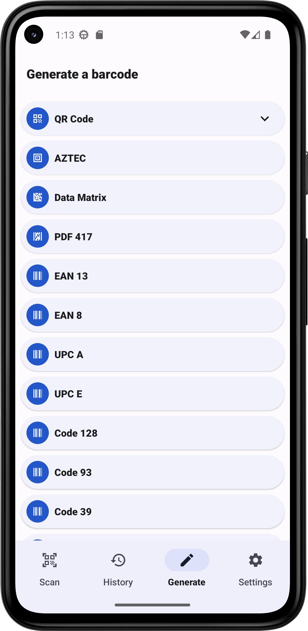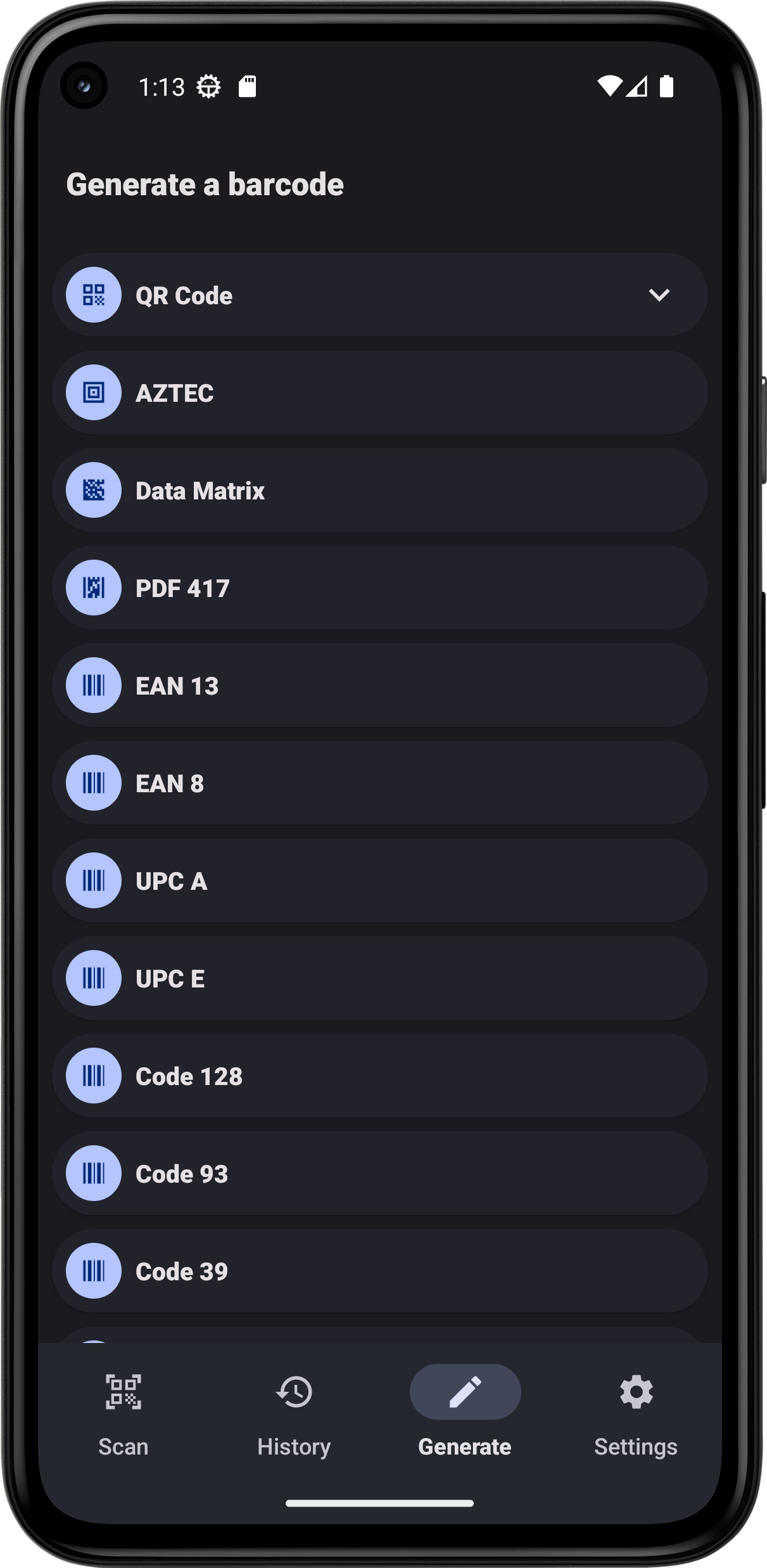 - Added the ability to select the type of barcode to scan (thanks to purr purr).