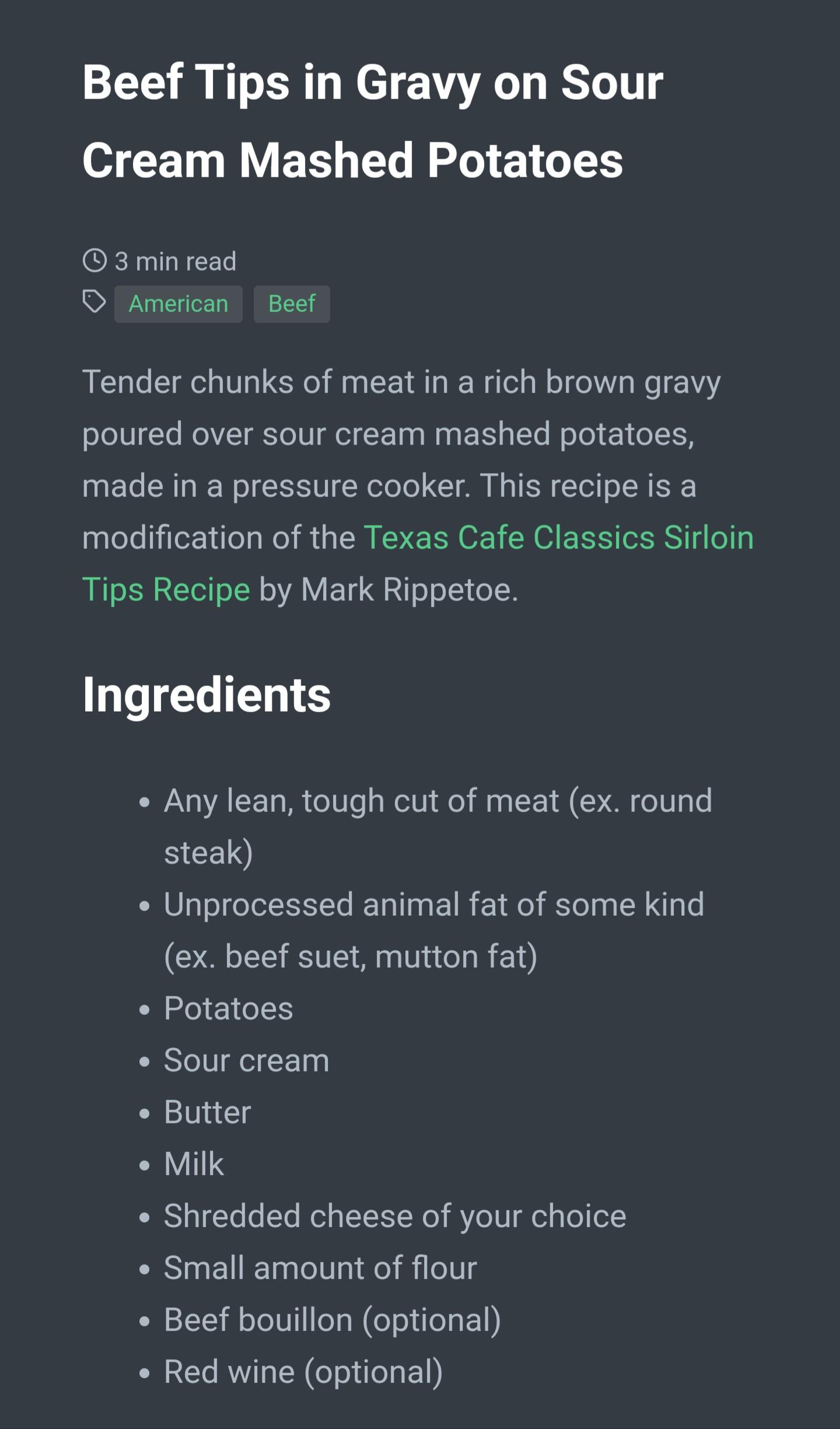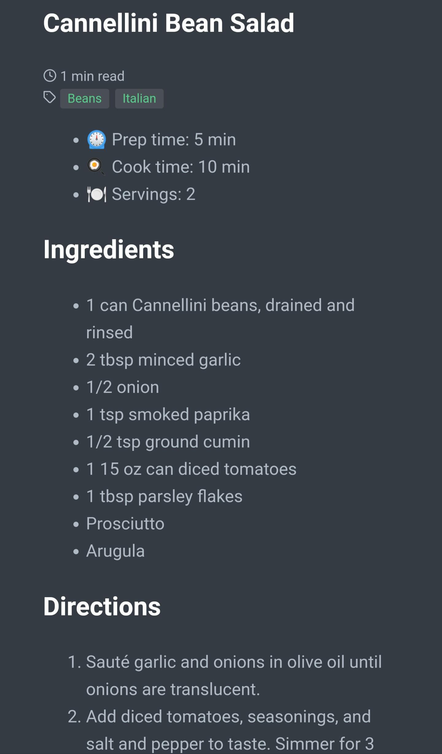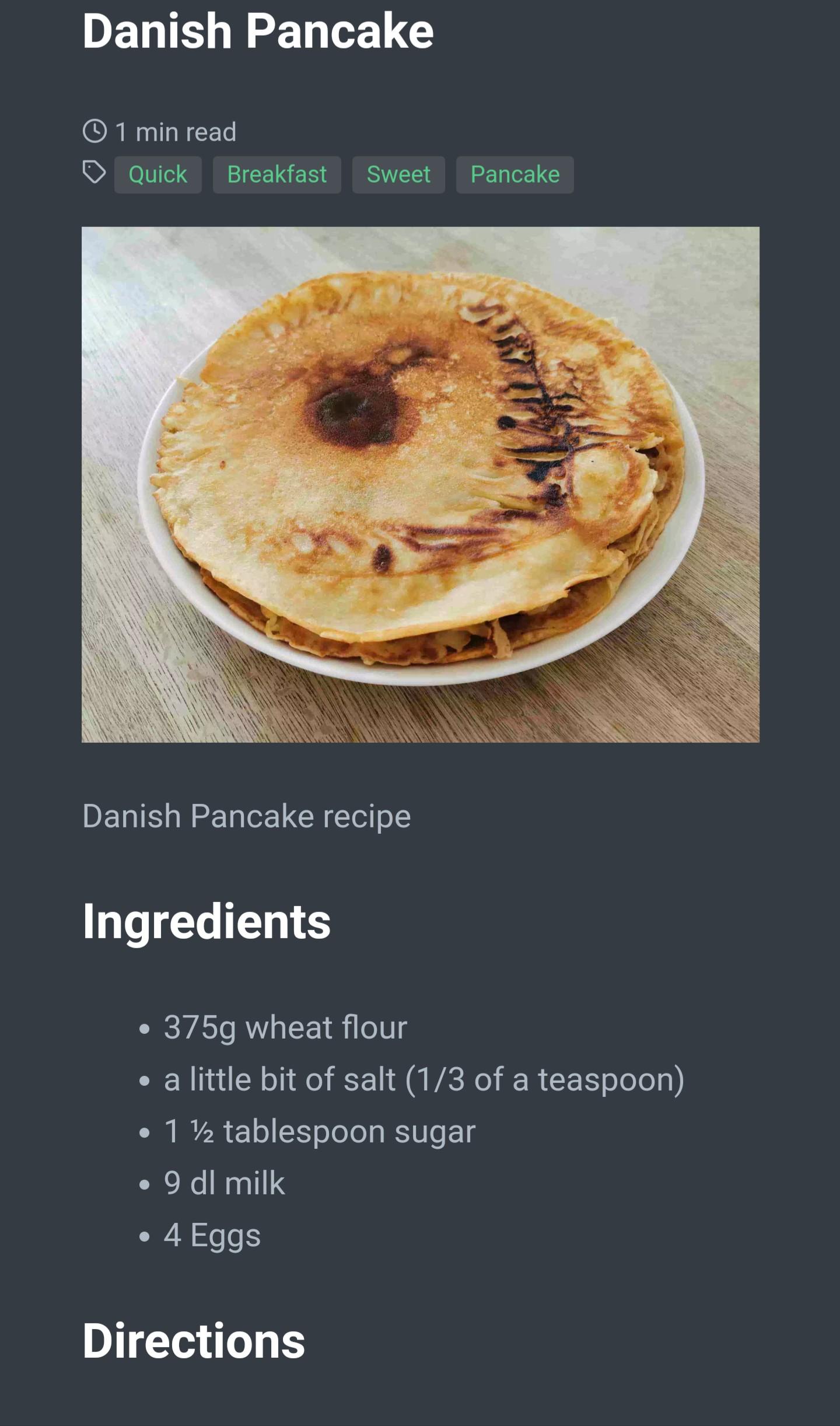 Cooking app with simple minimalist recipes which does not require an internet connection.