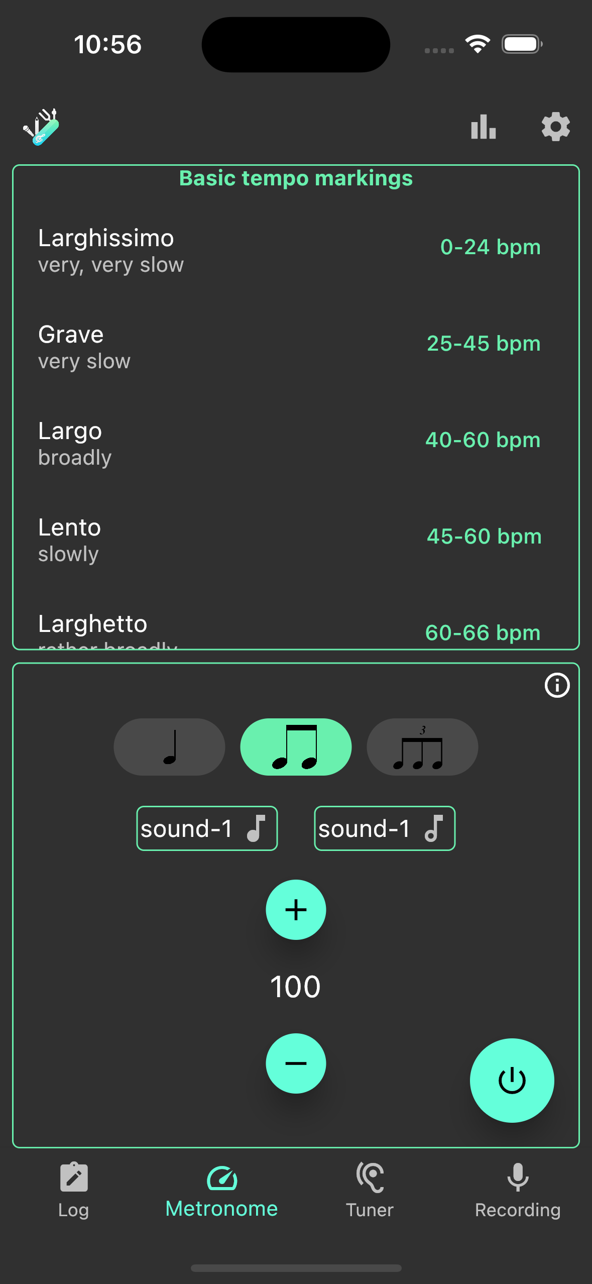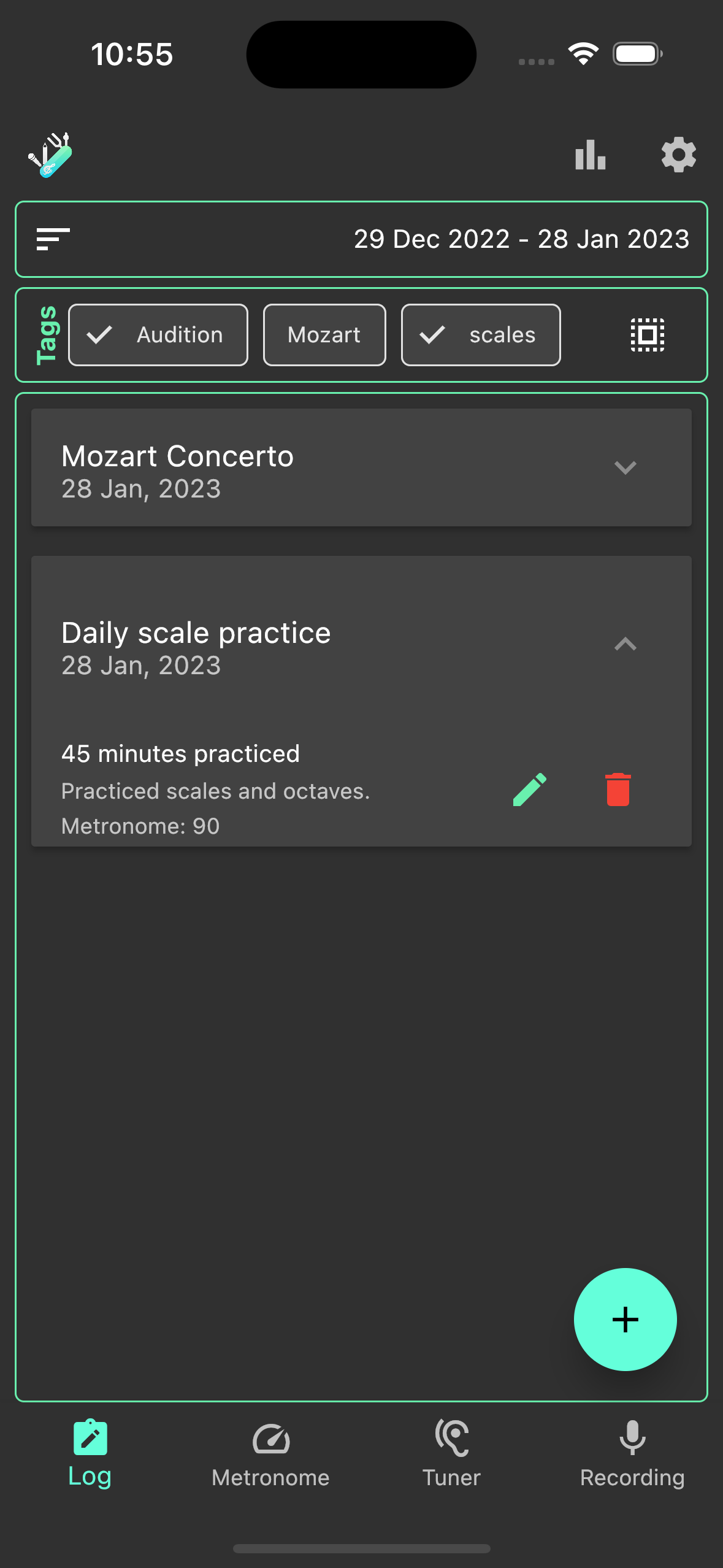 With the built-in Log feature, you can keep track of your practice sessions, set goals, and monitor your progress over time.