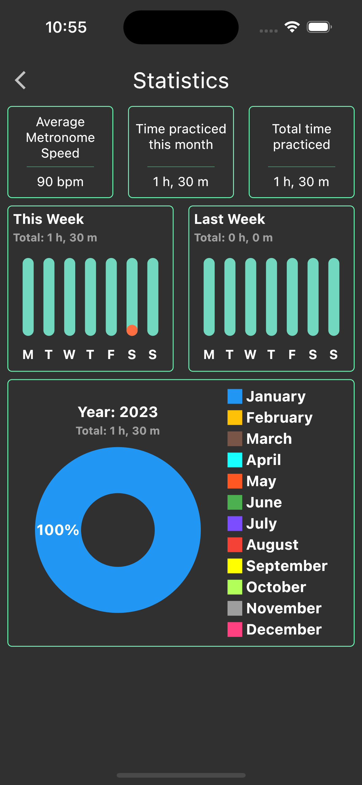 The app also provides detailed statistics, so you can see how much time you've spent practicing and how you've improved over time.