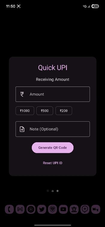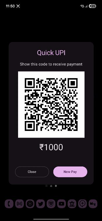 Quick UPI is the fastest way to request payments on Android. Forget opening heavy banking apps, navigating endless menus, and waiting for server connections just to show your QR code.