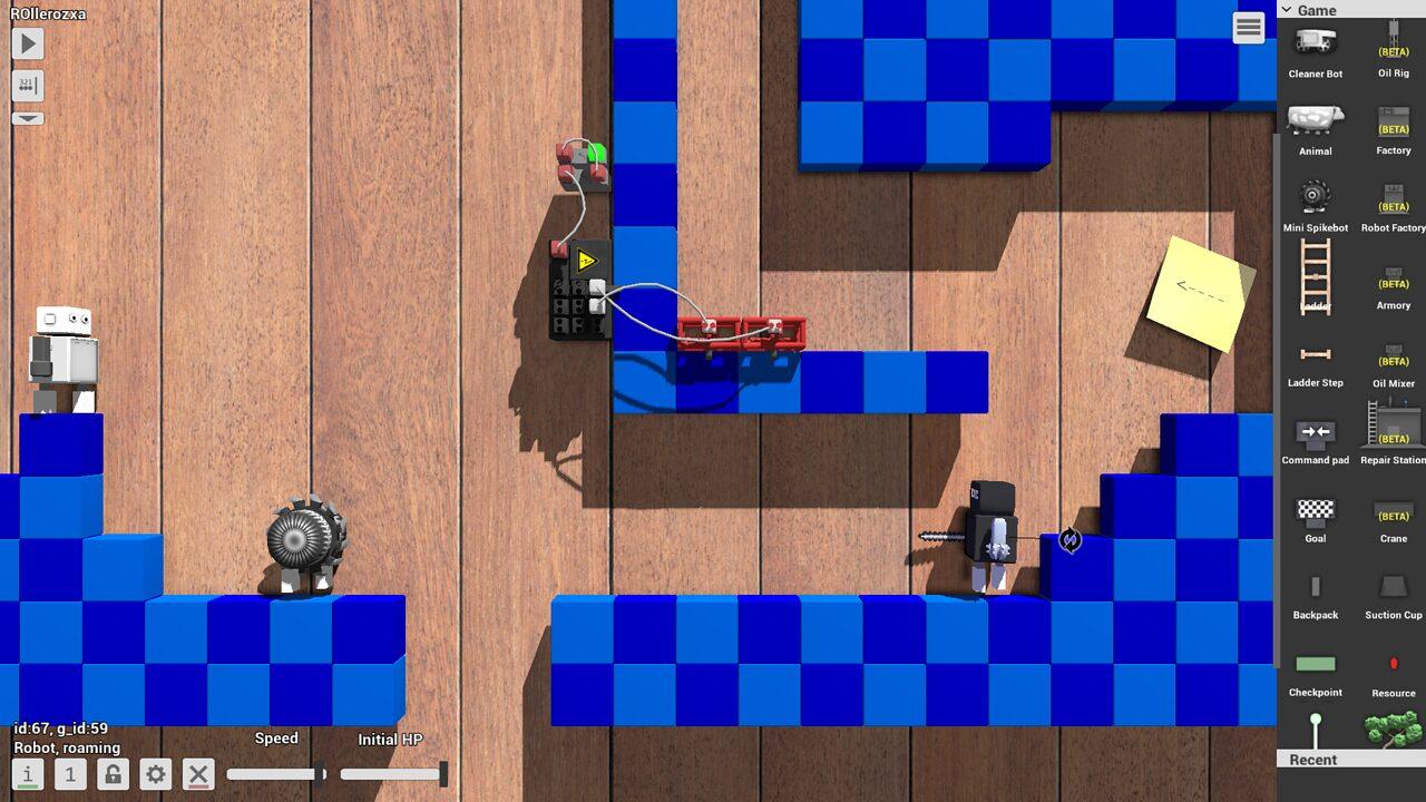 The sandbox contains 200+ different objects ranging from basic wooden building blocks to circuitry, electrical and mechanical components, small robots you can control and fight against, and a LuaScript object featuring Lua scripting that can interact with the world. Build a controllable car, a calculator or make your own game with circuitry or in Lua.