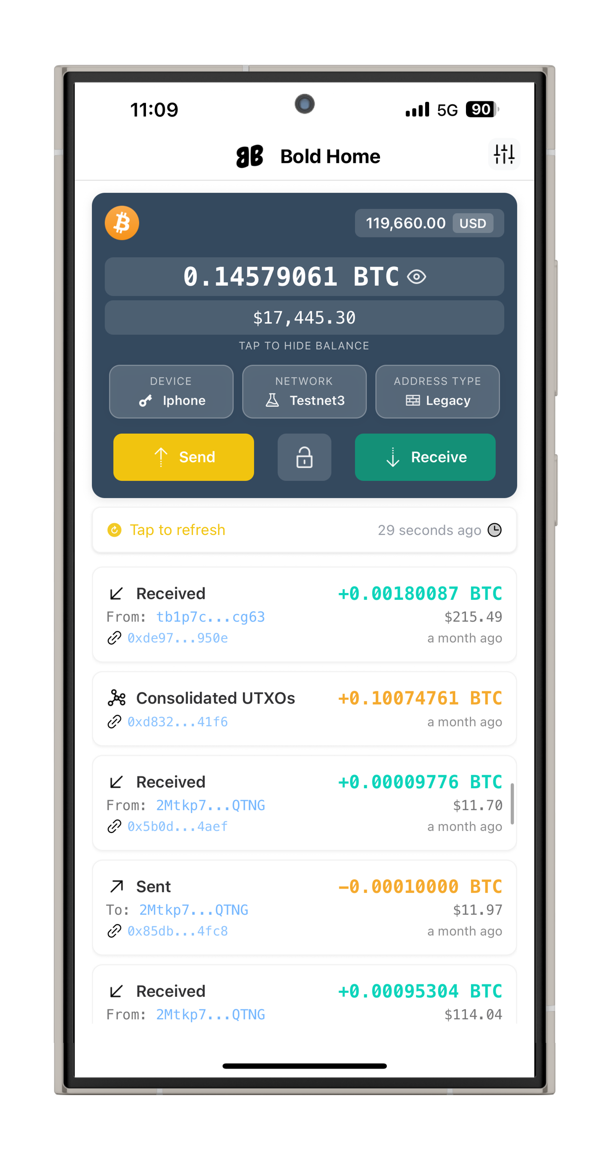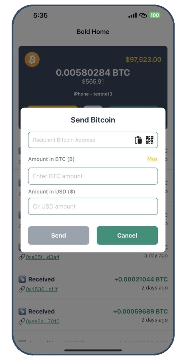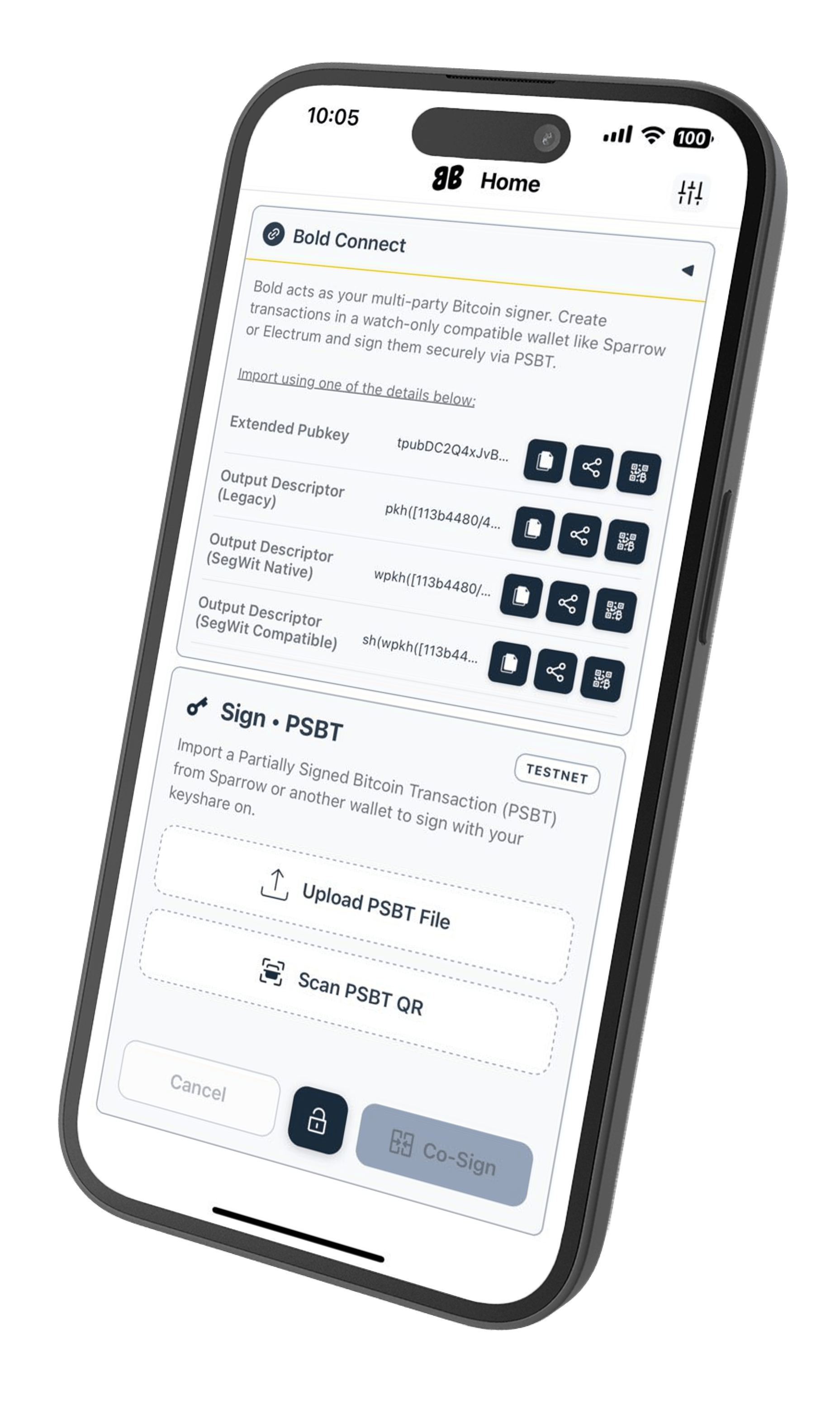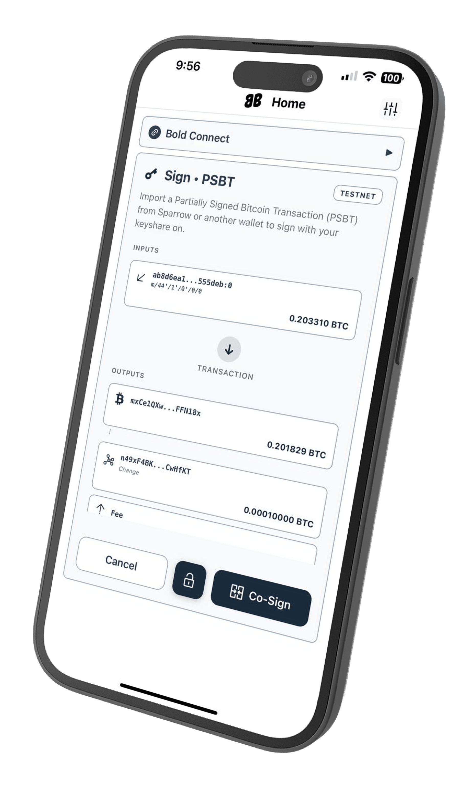 BoldWallet is an open-source next-generation Bitcoin wallet that eliminates traditional security tradeoffs and single points of failure.