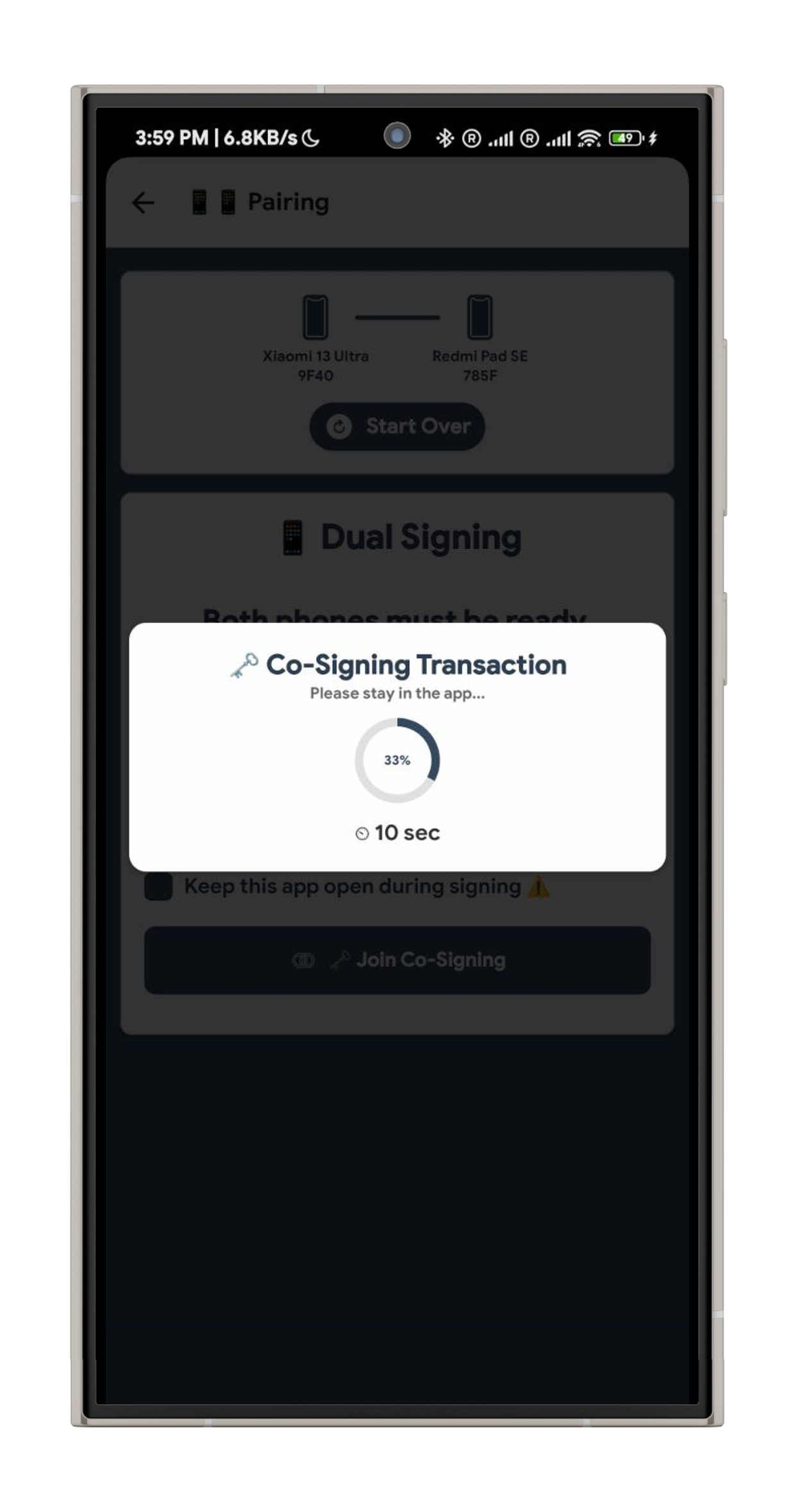 • 📱 up to 3 device-based key generation with 2 devices needed for signing