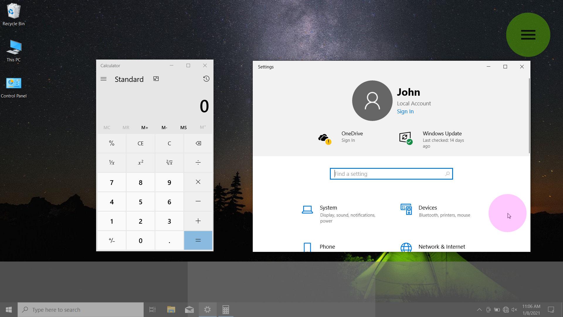 * Two-finger swipe gesture recognition.