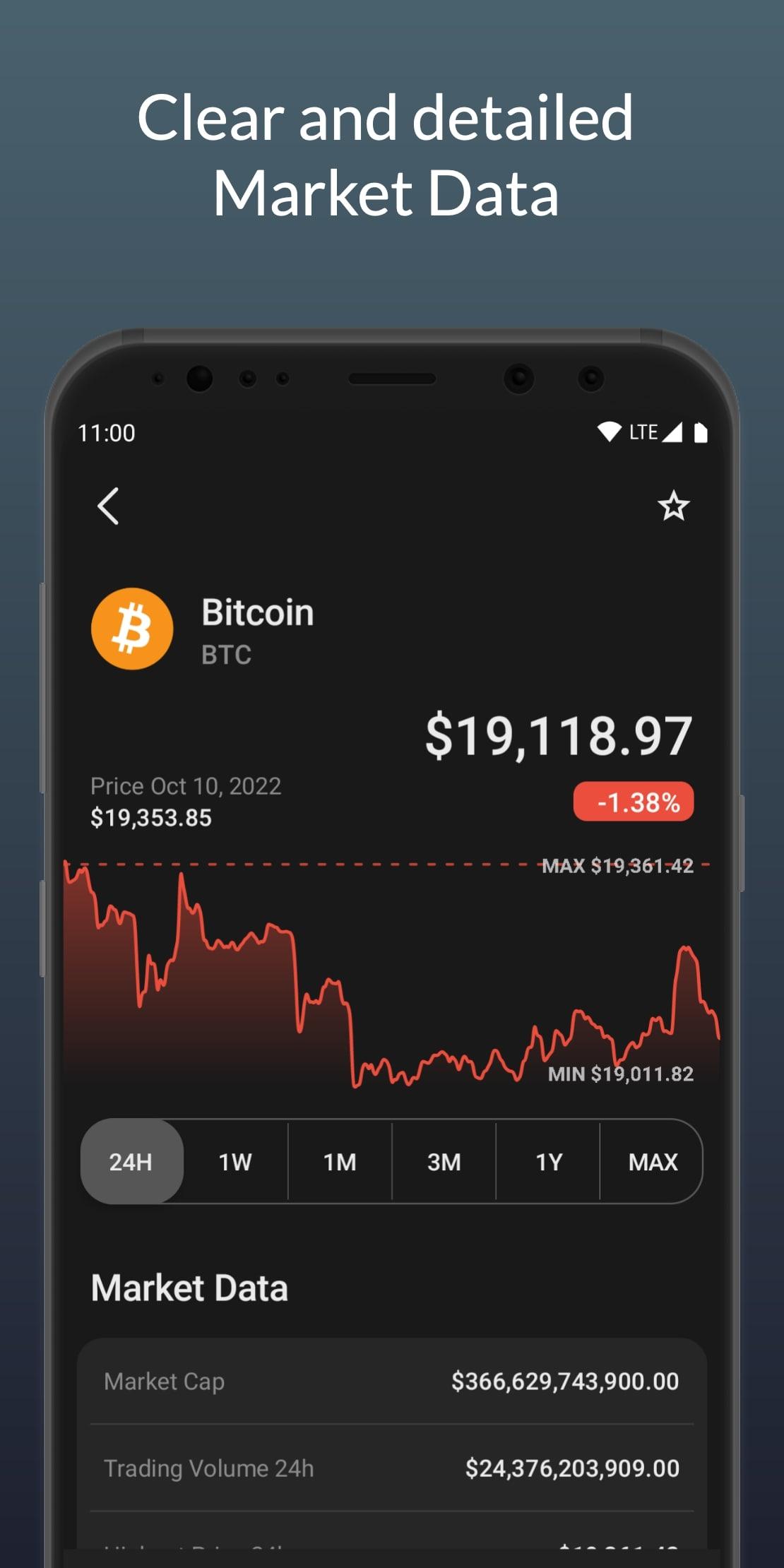 • Favourites: track your favourite coins at a glance by adding them to the favourite list and sorting them as you wish.