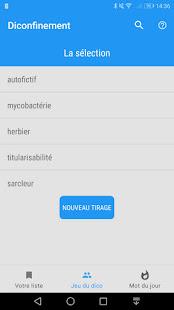 Diconfinement is a free, open source french dictionary allowing you to enrich your vocabulary. Diconfinement is available as iphone android application. It not only contains a dictionary but also allows you to play a game, save as many words as you want and learn a new word daily.