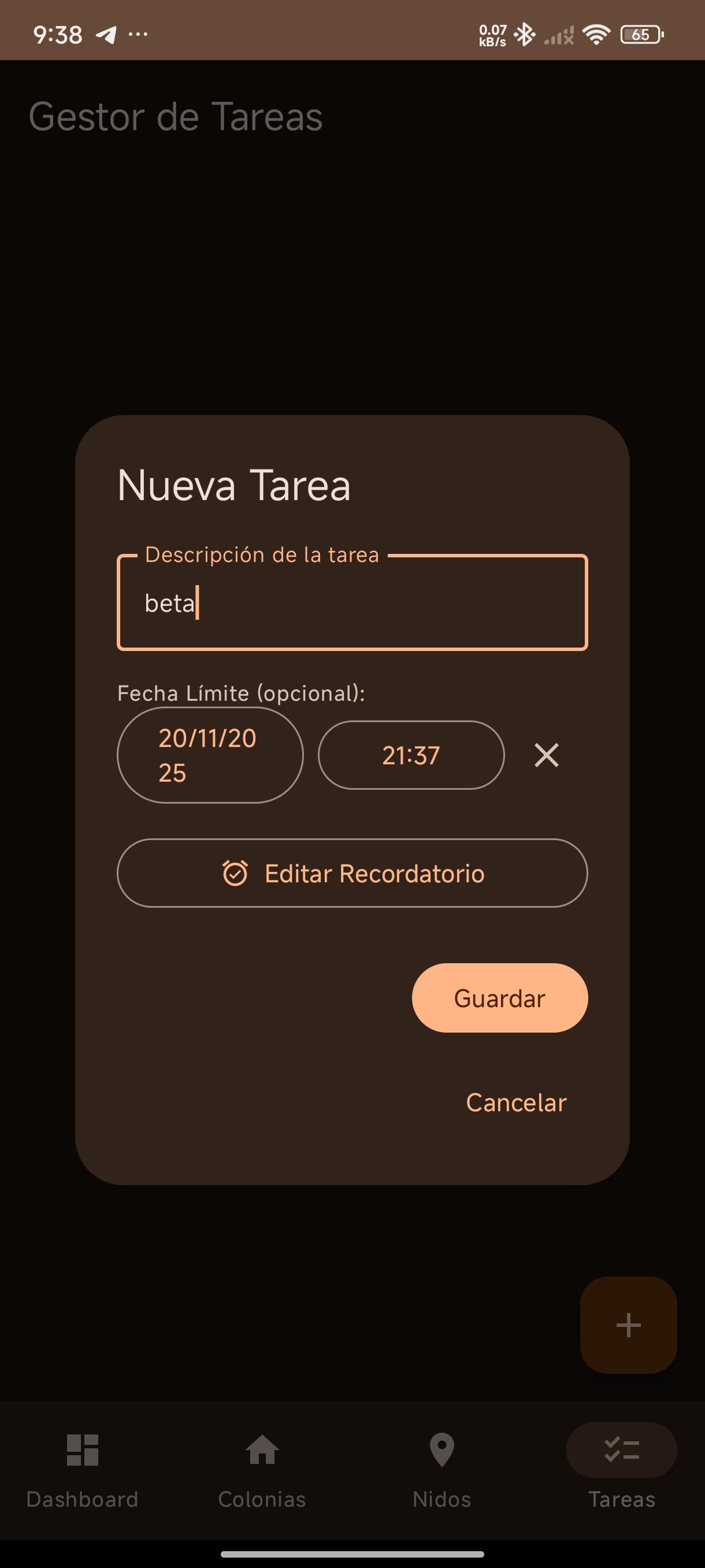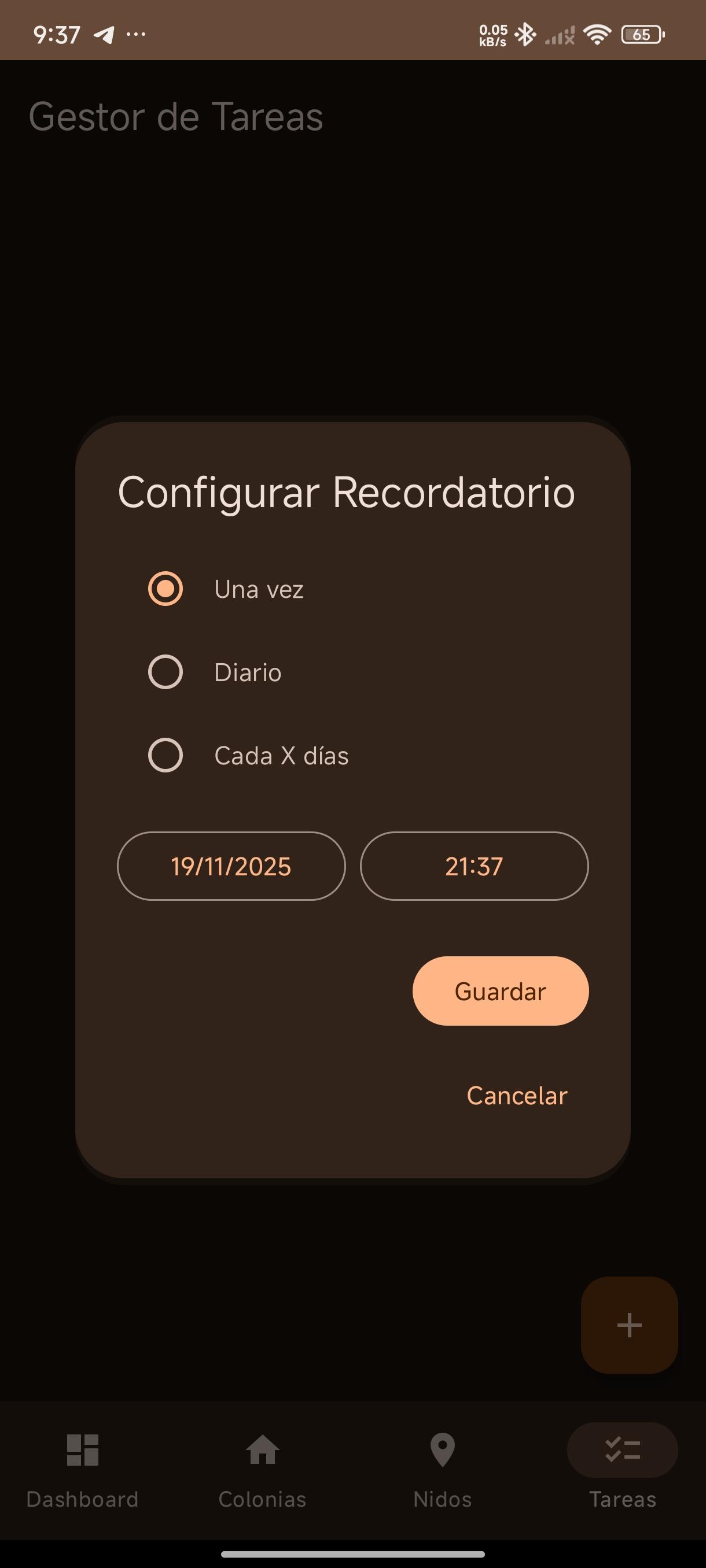 • Schedule reminders (one-time, daily, or every X days) to check on or feed the colonies.