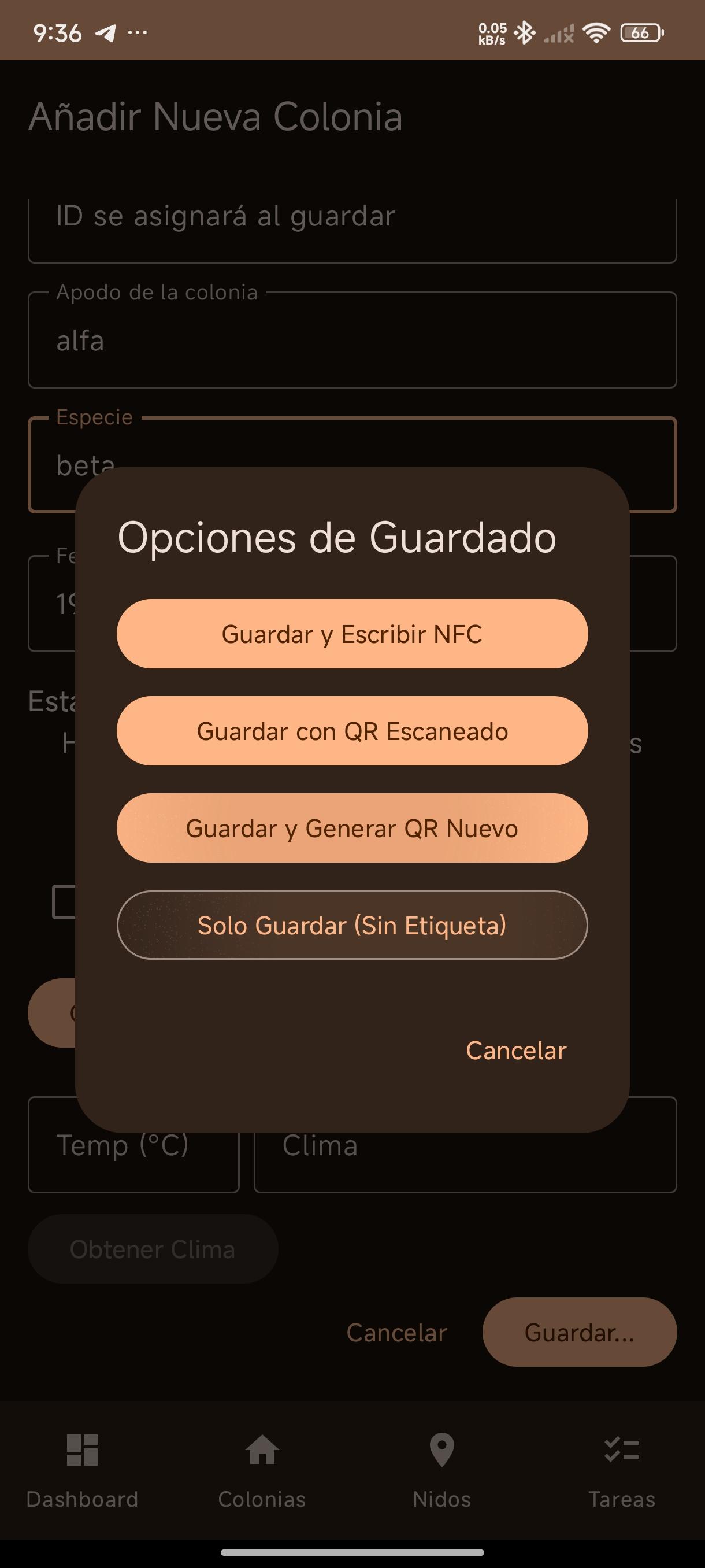 • Associate unique identifiers with each colony using NFC tags or QR codes.