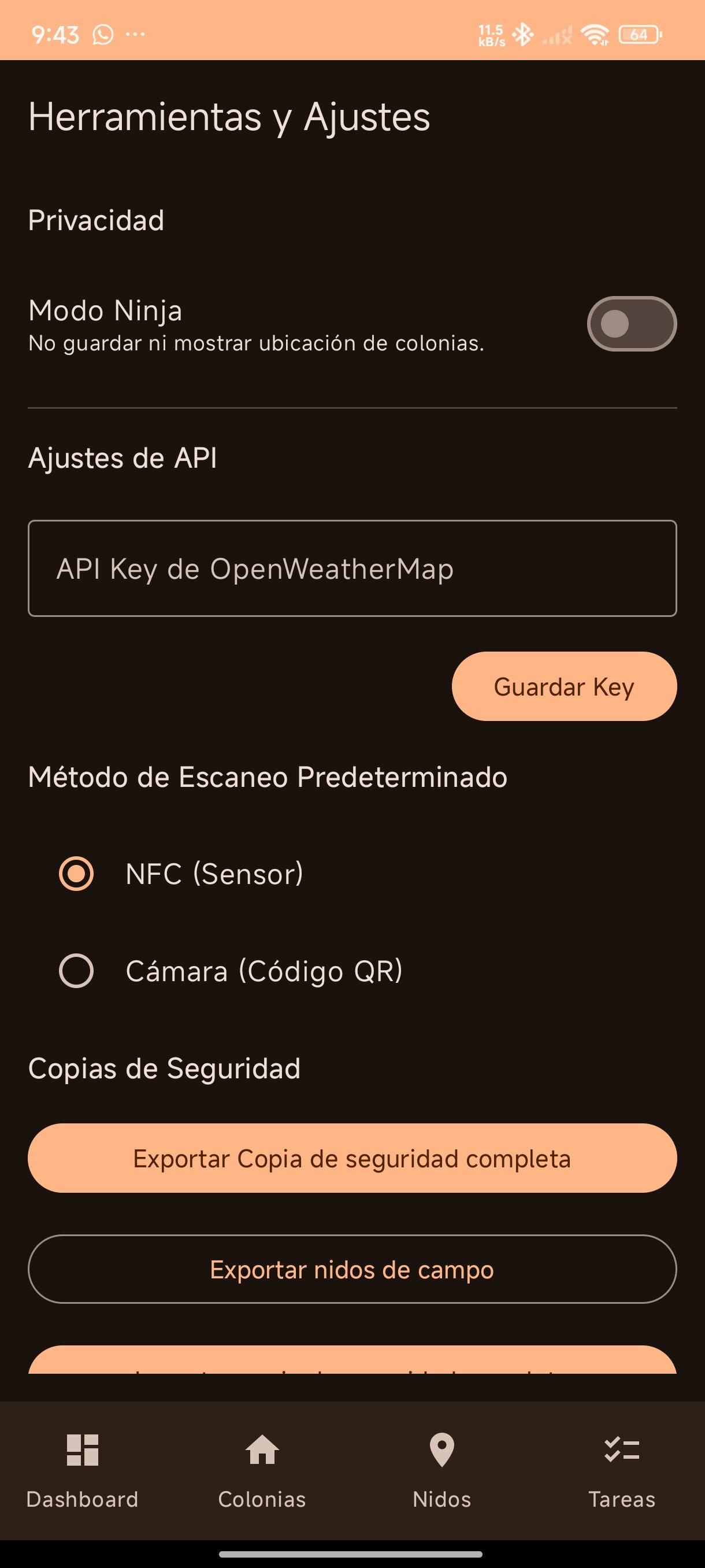 Android application for managing and monitoring ant colonies, using technologies such as NFC and QR codes for identification, feeding/care reminders, and environmental data recording.