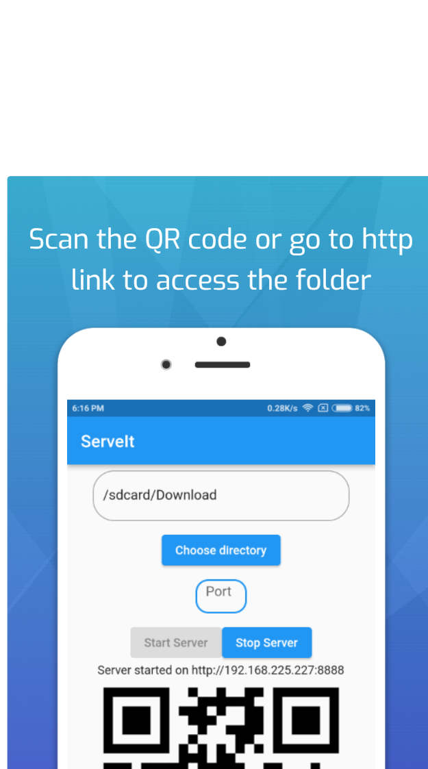 Any device connected to the same wifi network and with a web browser, can navigate to the server url or scan the QR code to access the directory exposed