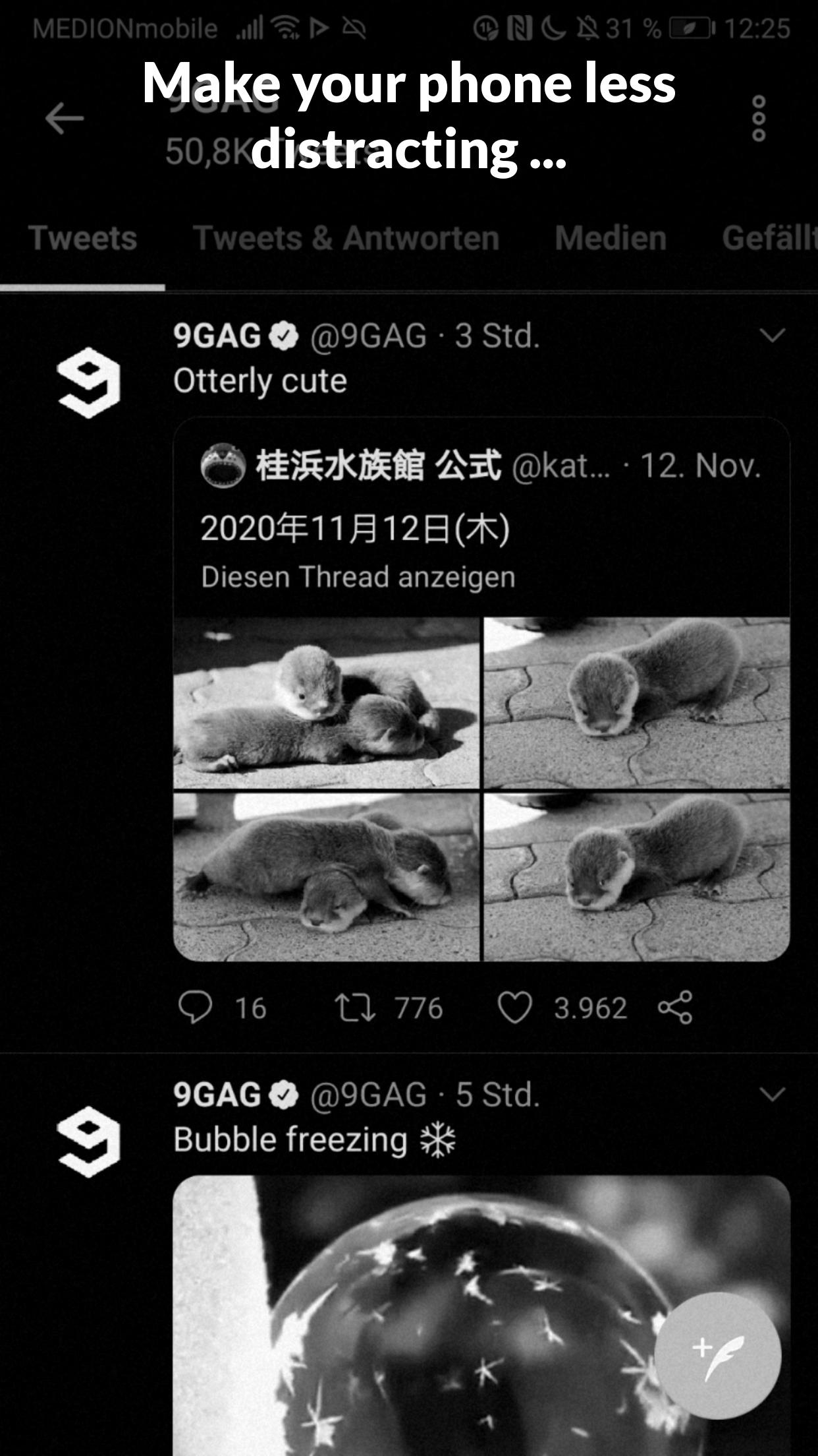 * Grayscale: Going grayscale removes positive reinforcements and dampens compulsive smartphone use.