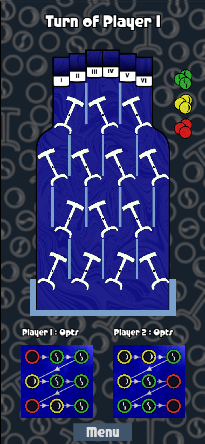 Cascada is a free and open source software version for android of the classical game Avalanche from the '60s ([wikipedia page](https://en.wikipedia.org/wiki/Avalanche_(marble_game))). The mechanics creator is Frank W. Sinden. The publisher of the board game Avalanche is Parker. I'm not associated with any of them in any way.