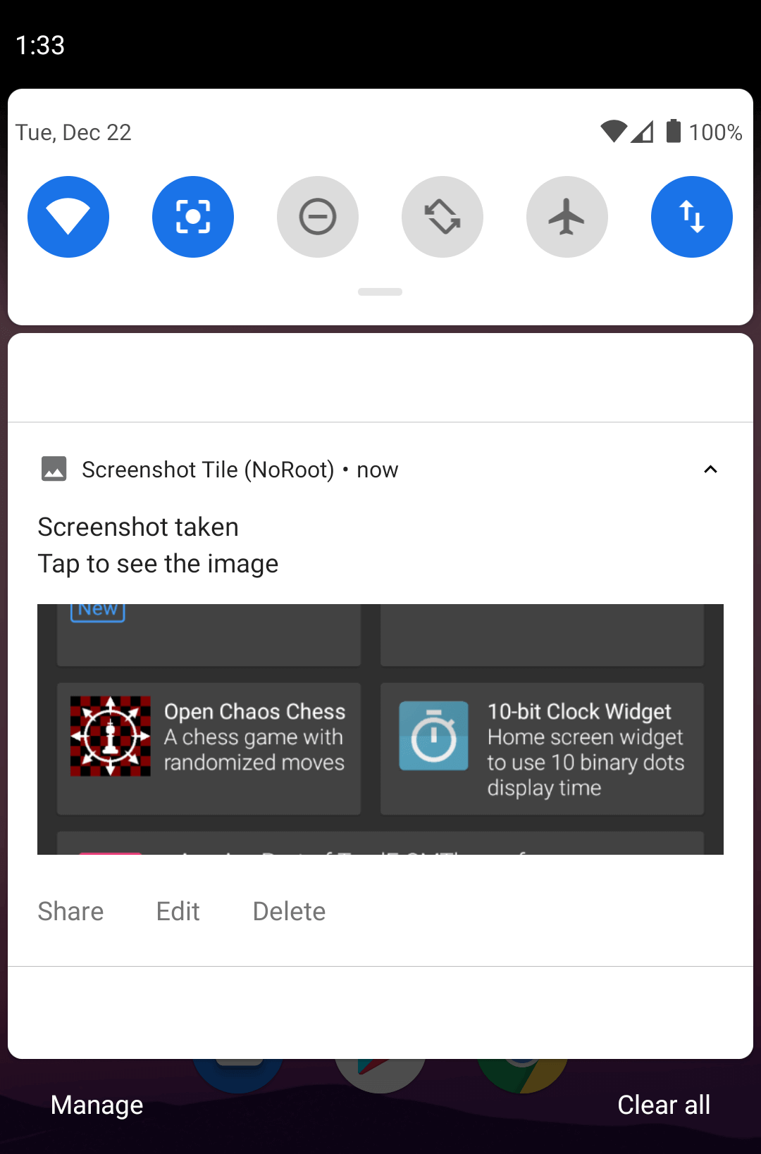 ✓ Immediately share, edit or delete a screenshot from the notification