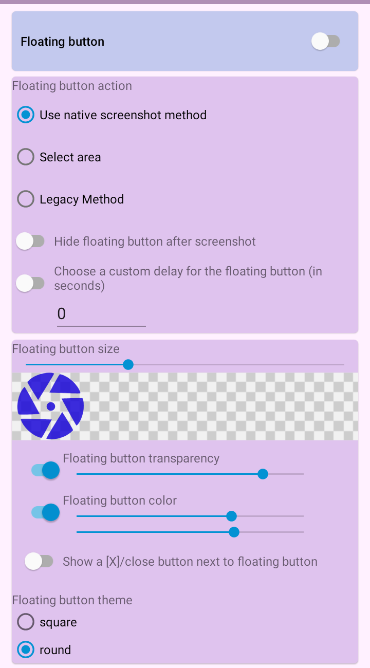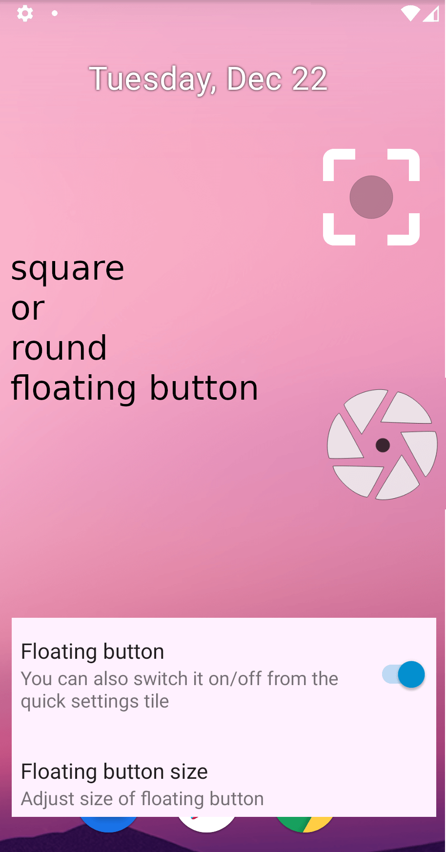 ✓ Floating button/Overlay button like a chat bubble (Android 9+)