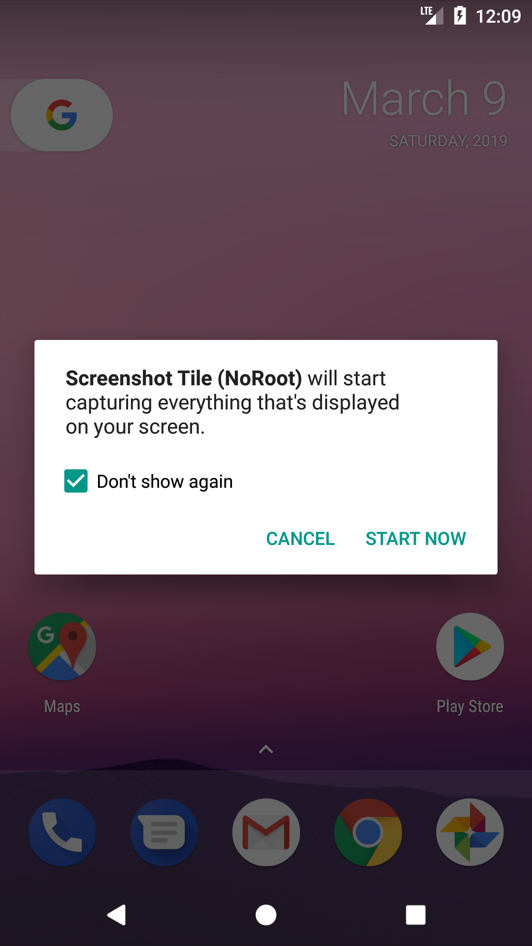 After install you need to add the button/tile to your quick settings and then grant the permissions to record screen captures and save images to the internal storage.