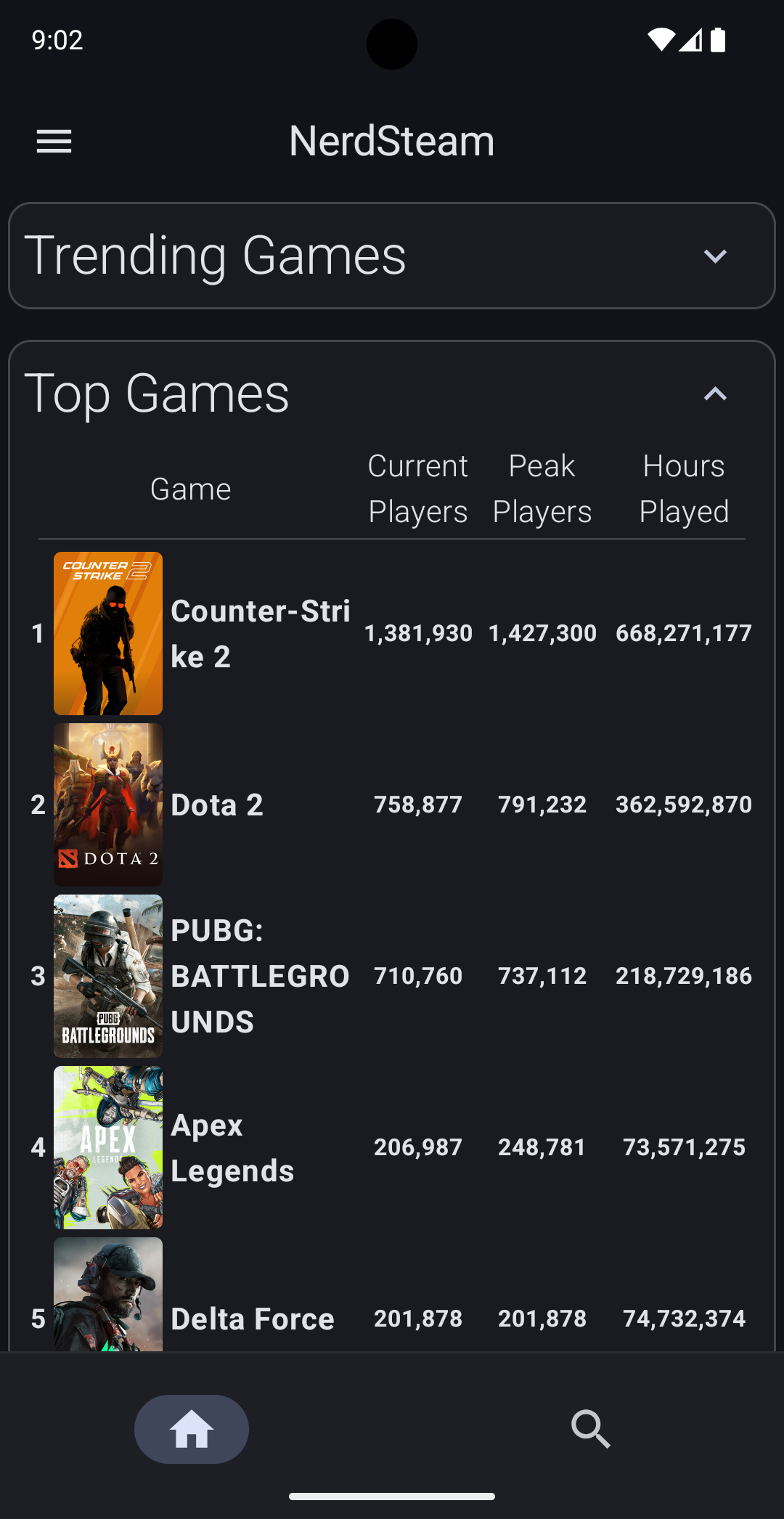 NerdSteam is a hobby project of mine where users can view trending and top games of Steam,