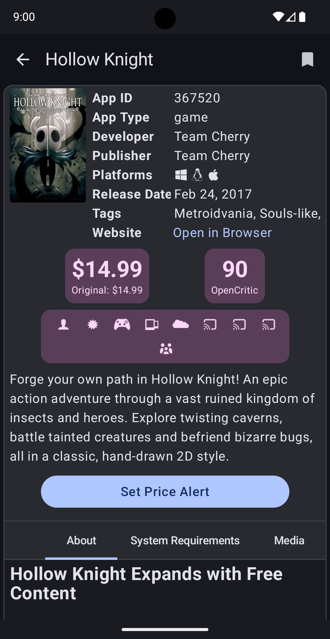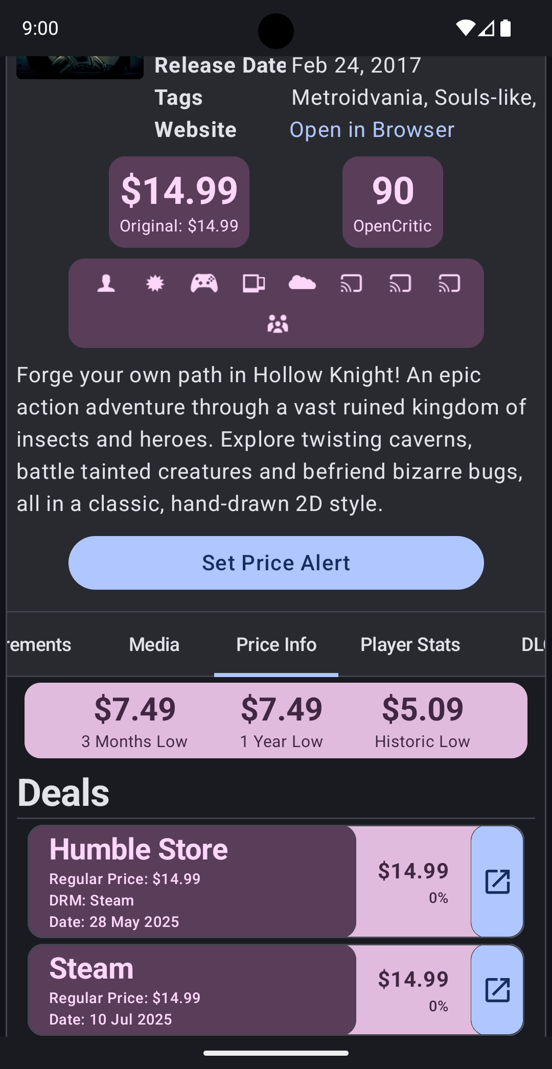 - Compare prices and deals for a game from other platforms (like GOG, Humble Store).