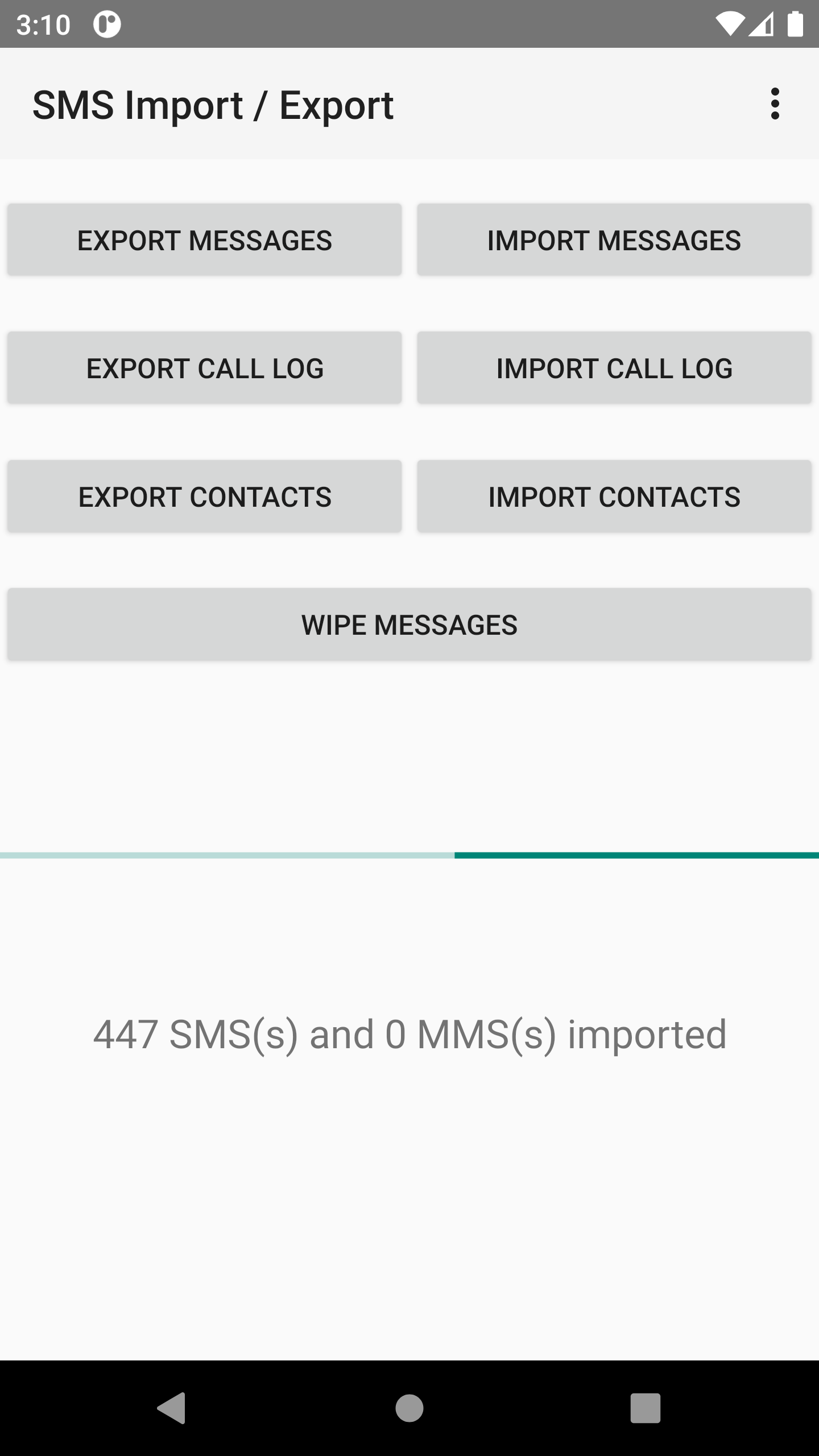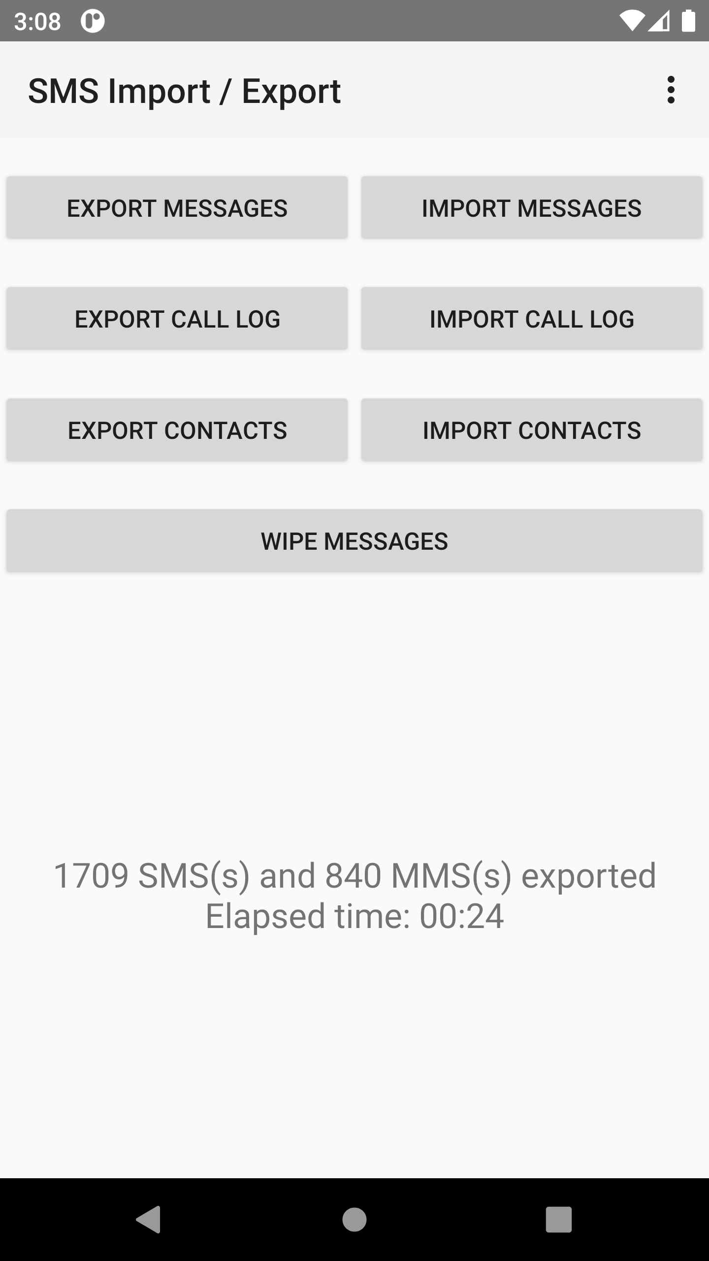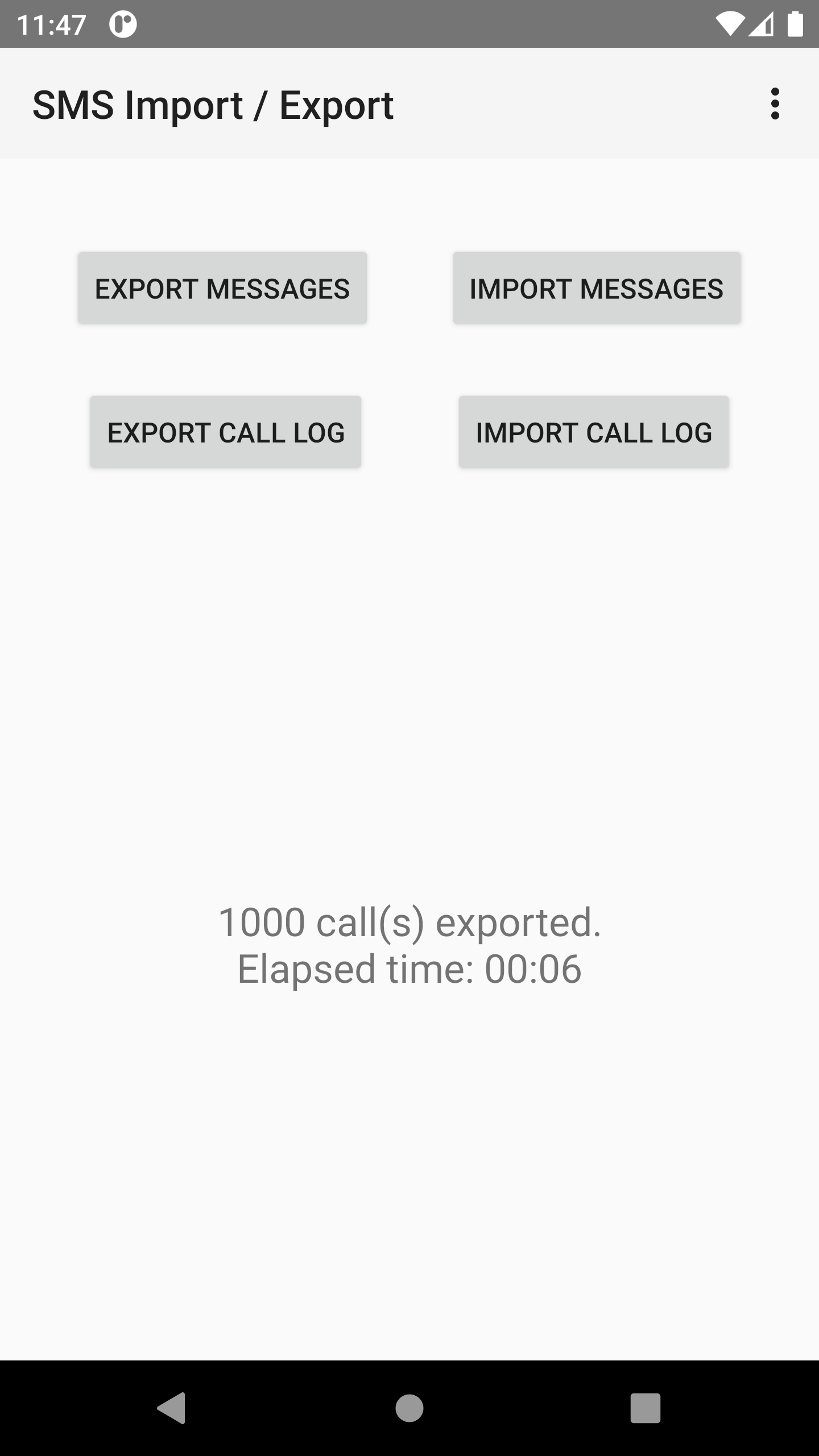 SMS Import / Export imports and exports SMS and MMS messages, call logs, contacts, and blocked numbers from and to (ND)JSON / ZIP files. (Contacts import and export are currently functional but considered experimental.) It does not require root.