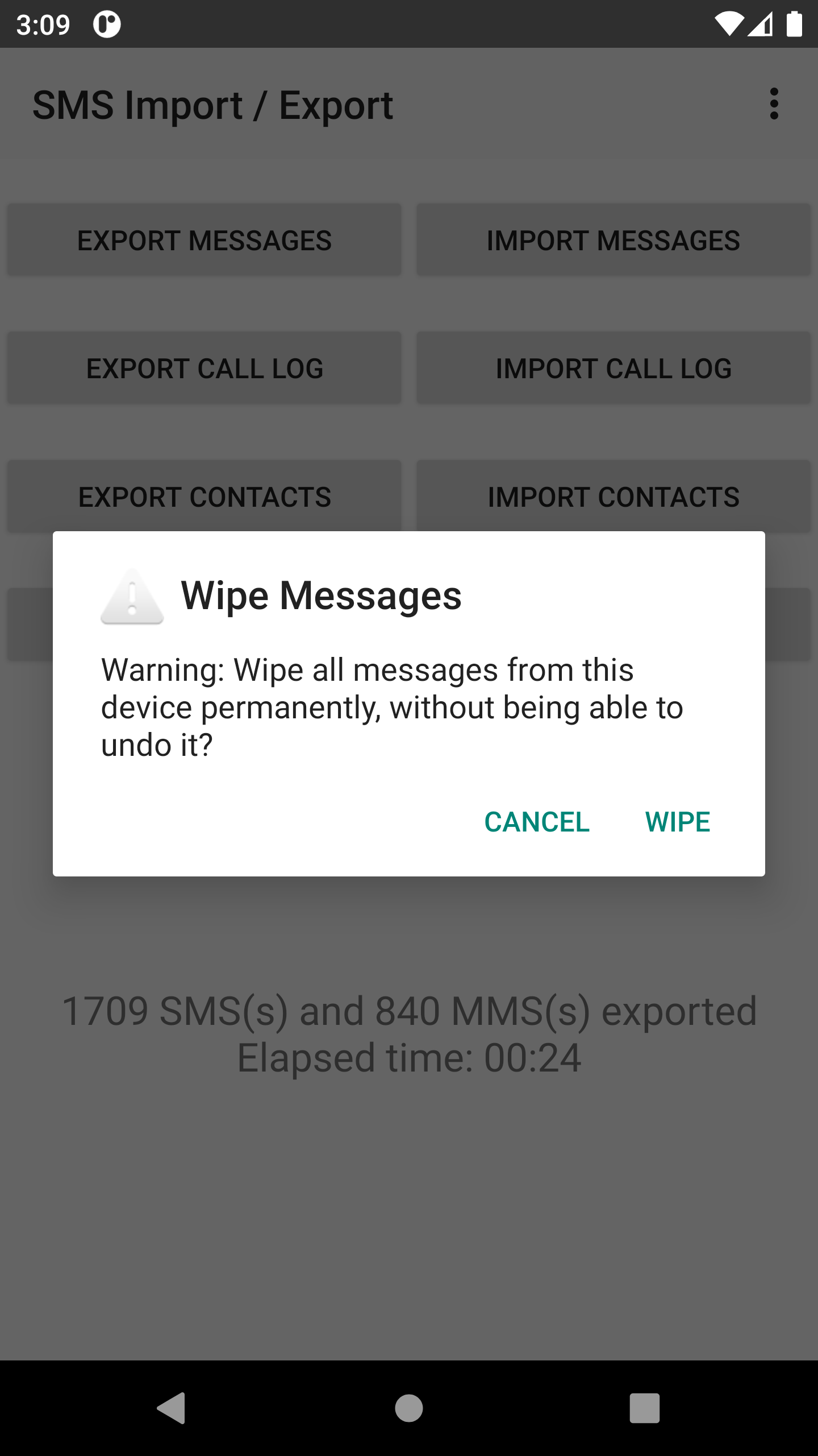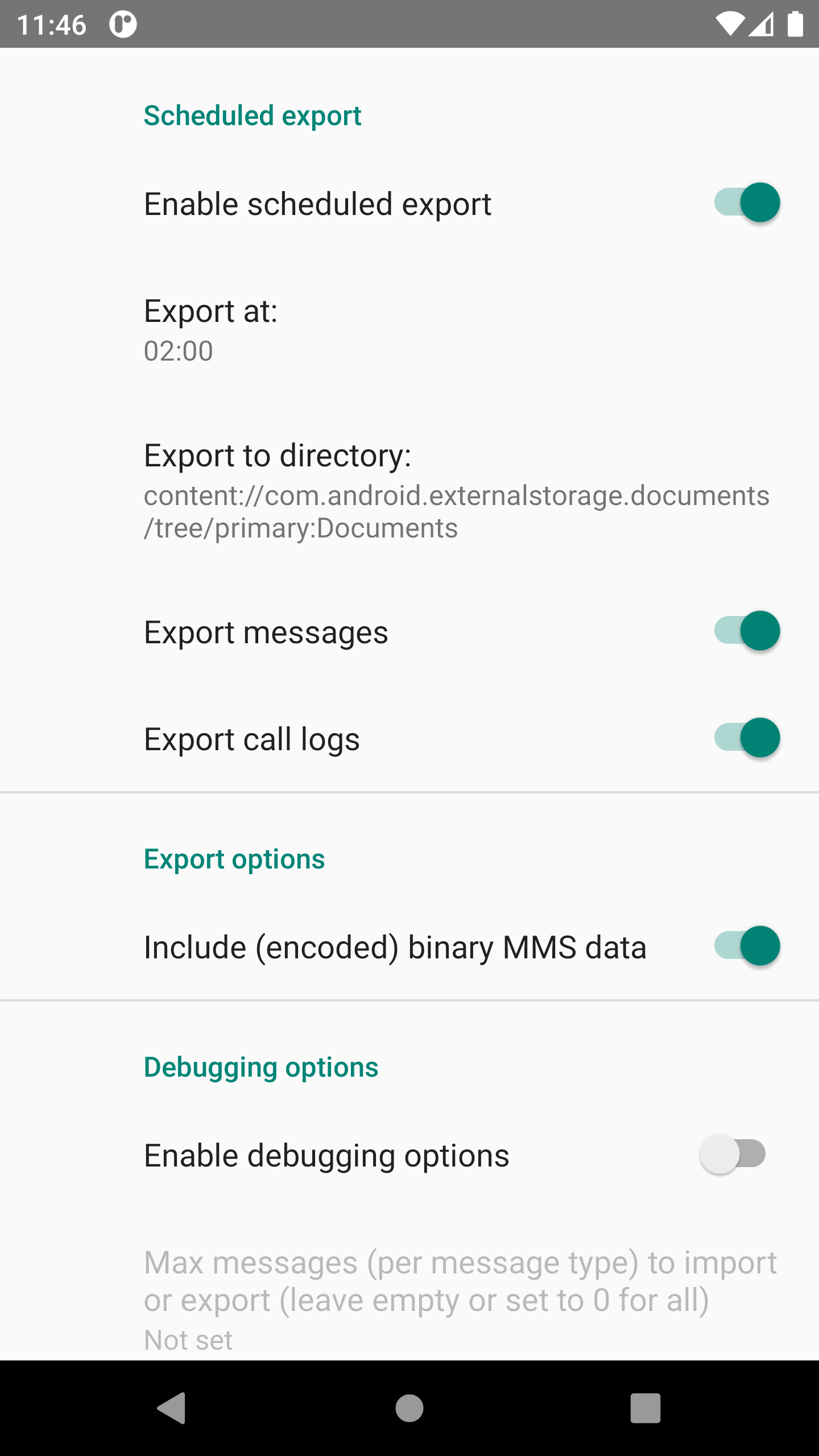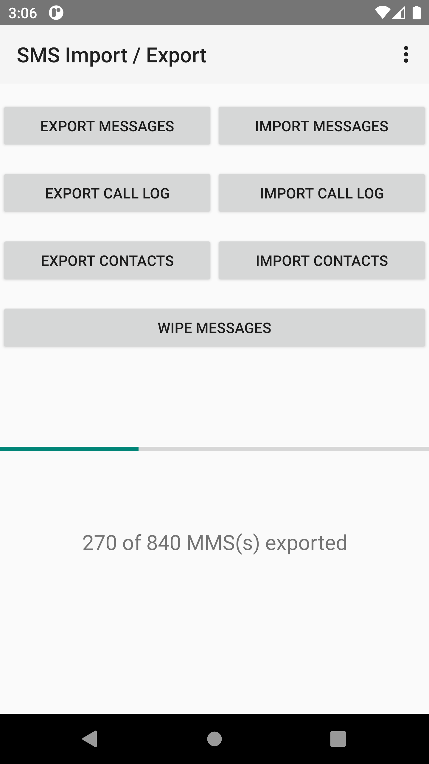 SMS Import / Export imports and exports SMS and MMS messages, call logs, contacts, and blocked numbers from and to (ND)JSON / ZIP files. (Contacts import and export are currently functional but considered experimental.) It does not require root.