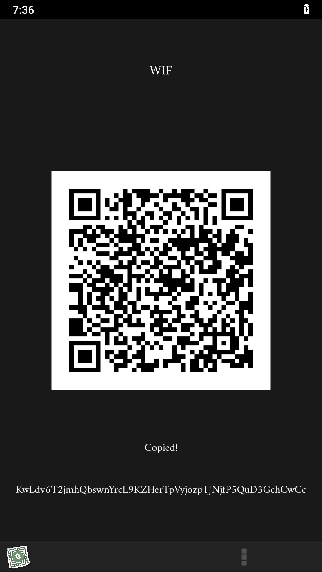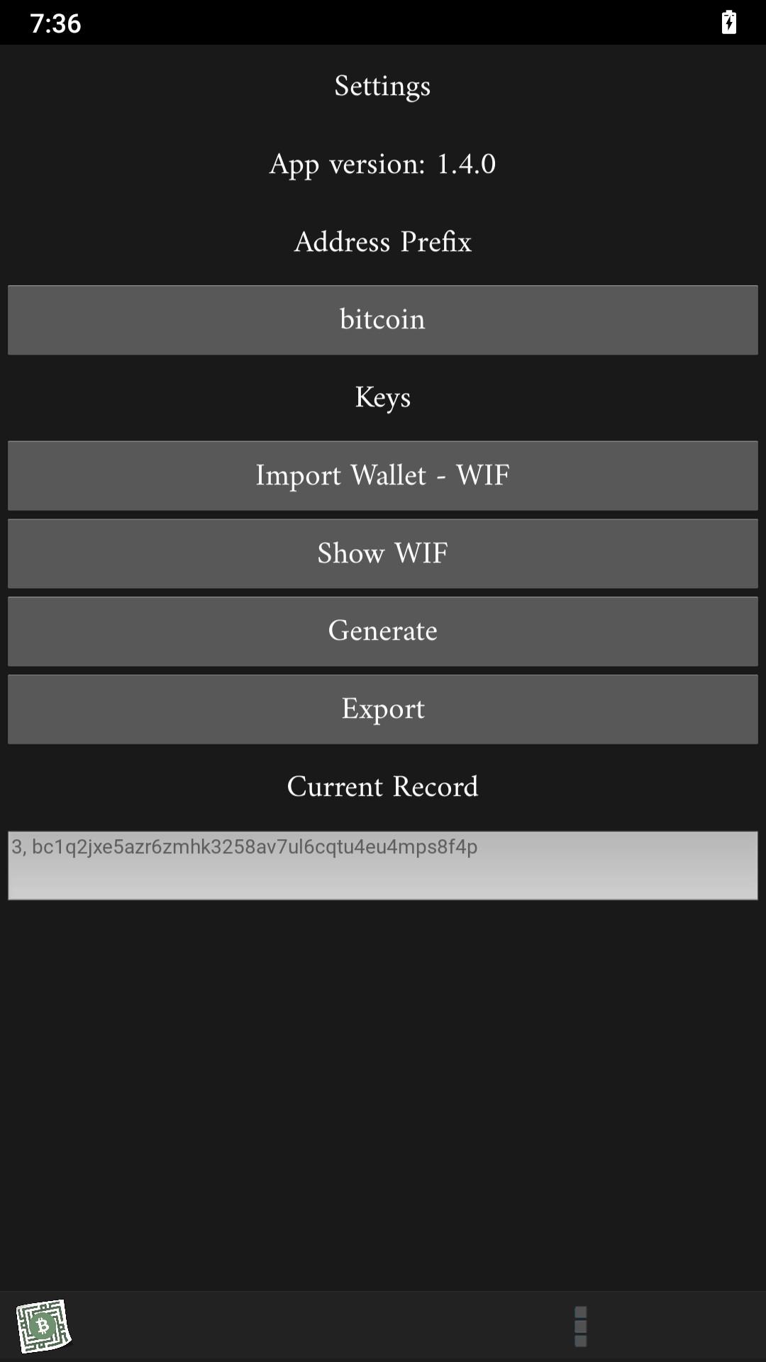 App keeps historical list of generated address, key pairs that could be exported.