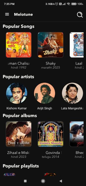 Melotune is a clean, ad-free Android music streaming app powered by the unofficial JioSaavn API. Inspired by Spotify’s minimal interface, this app enables users to search, stream, and enjoy music seamlessly — all without login or tracking.