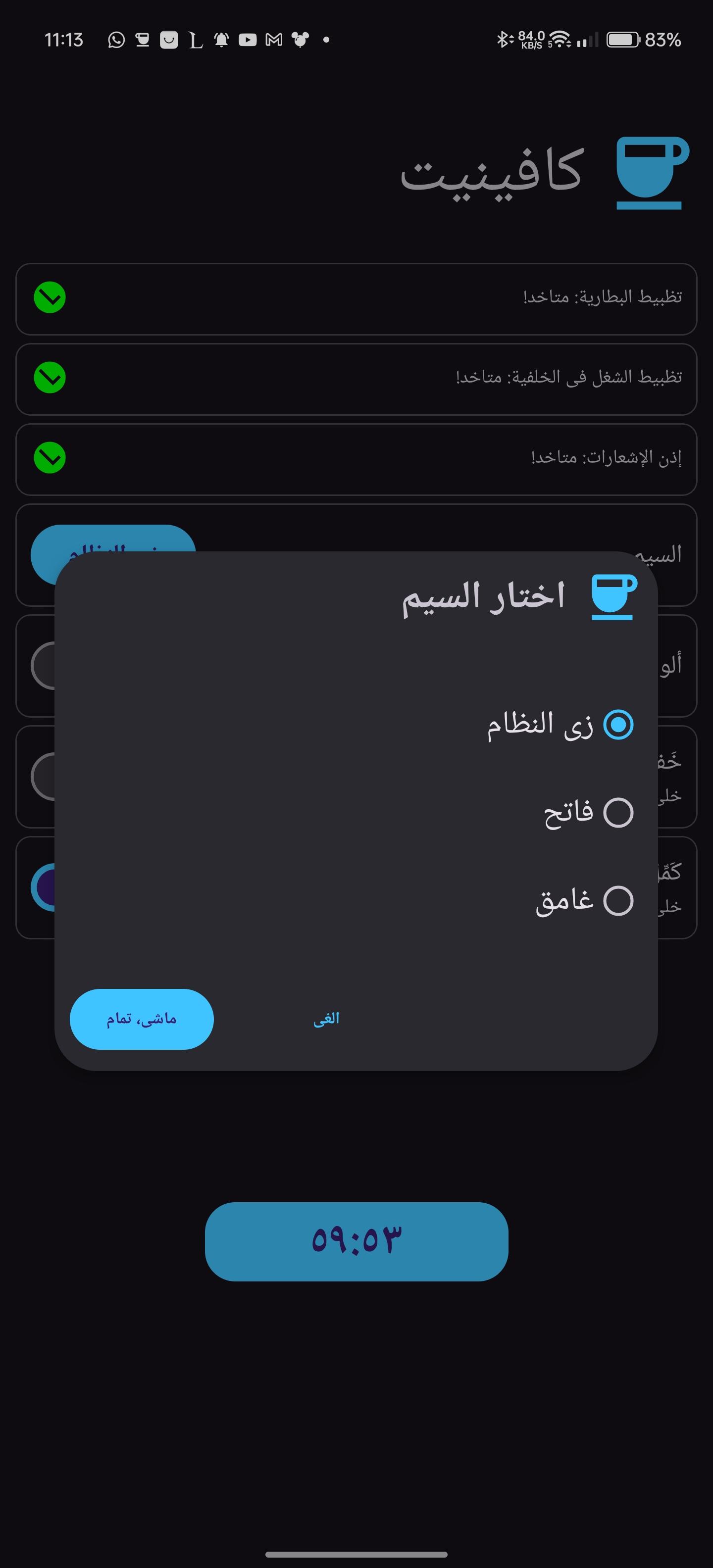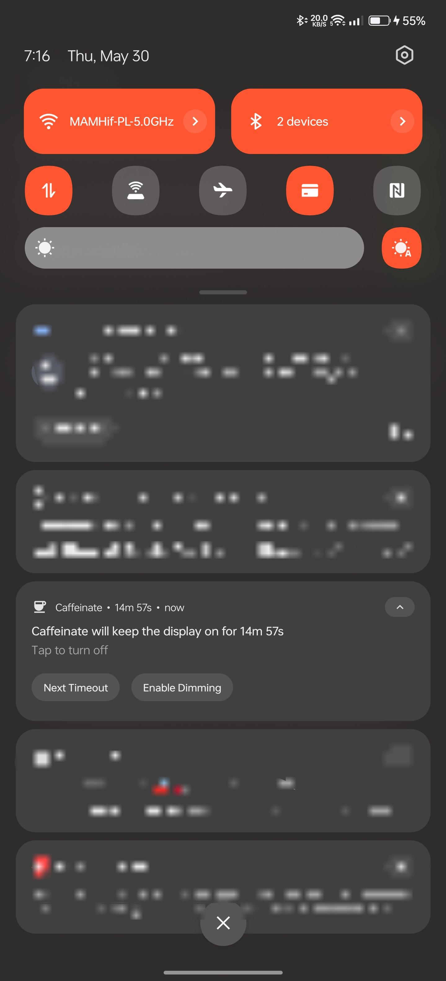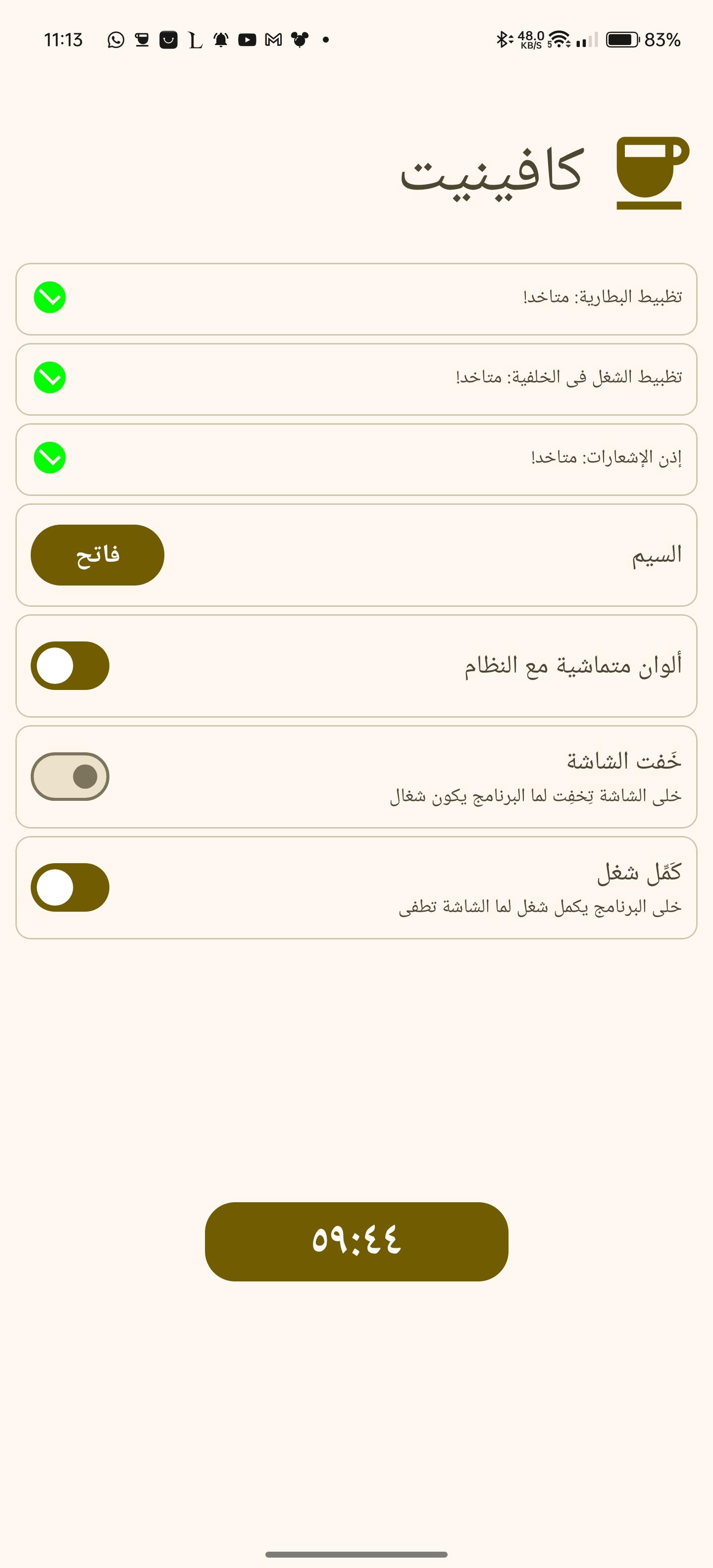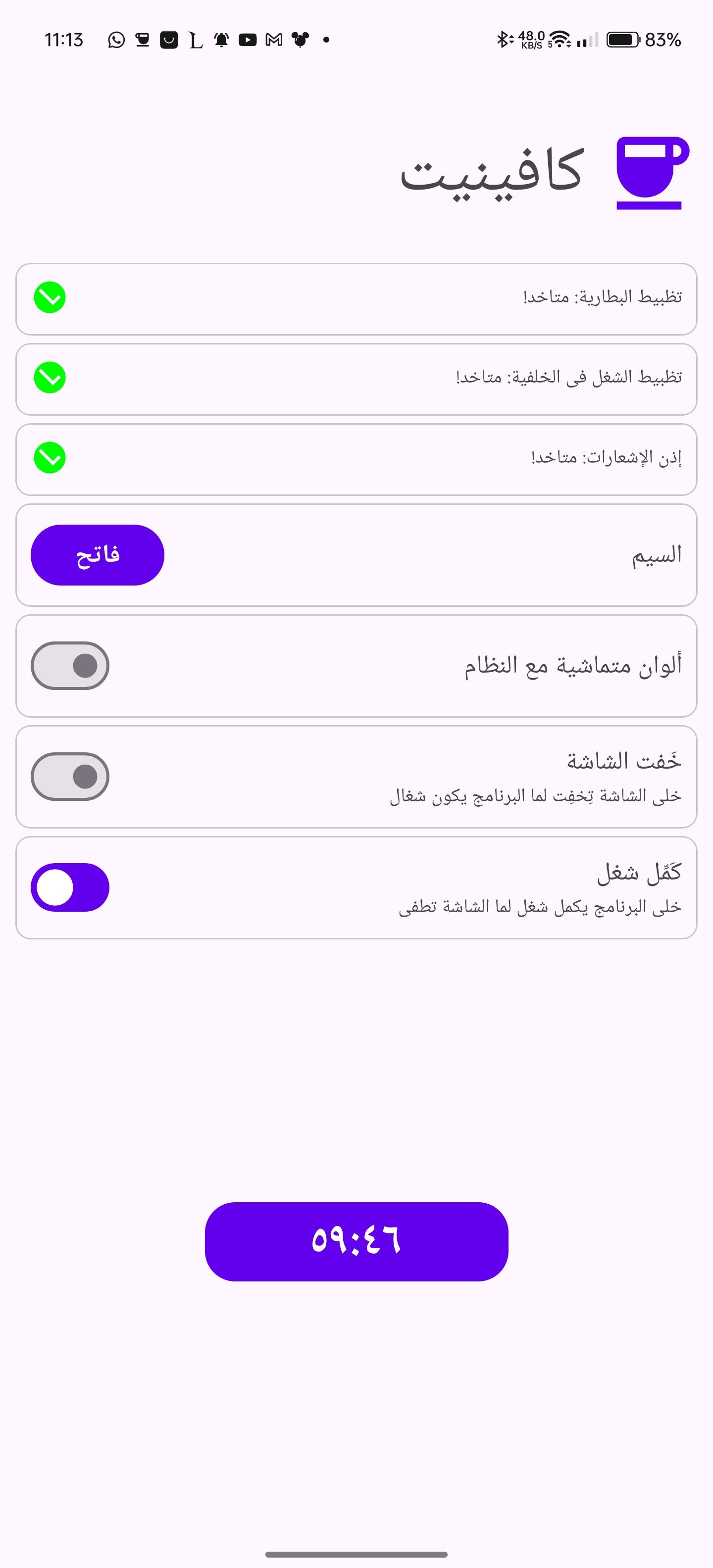 WakeLock Class with either SCREEN_DIM_WAKE_LOCK or SCREEN_BRIGHT_WAKE_LOCK lock level based on user settingsquick settings tile or the button in the app. clicking them, selects the next timeout and after 1 second the timeout will start, if the quick settings tile or the button are clicked after starting, the timeout will stop.[30 seconds, 05 minutes, 10 minutes, 15 minutes, 30 minutes, 60 minutes, Ꝏ]WakeLock is acquiredWakeLock if the screen is locked, so that the screen will keep on after unlocking, default behaviour is that the WakeLock is released when the screen is locked[light, dark, system default and material you]WhatsNew: