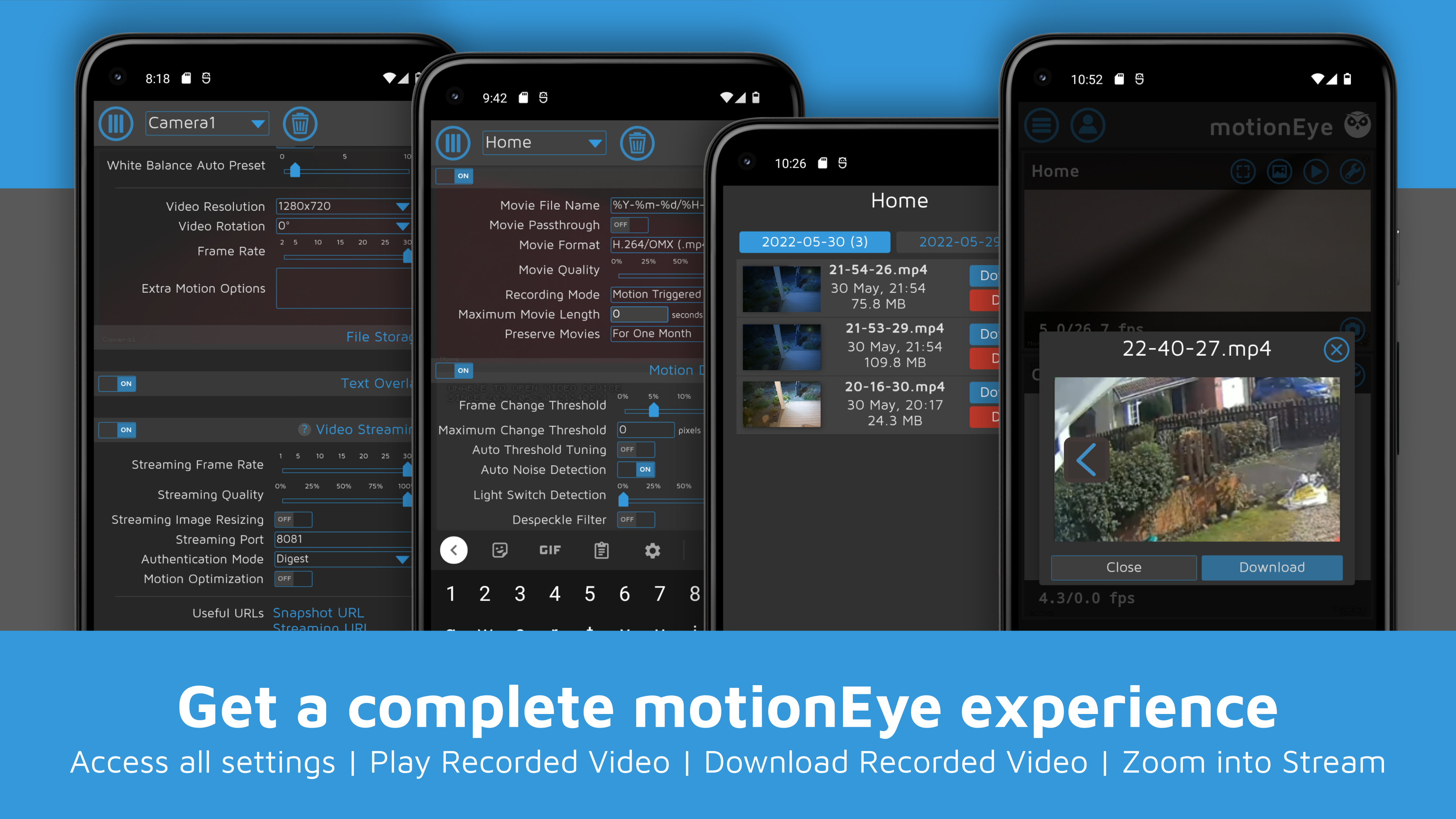 The motionEye app is an interface to interact with all of your motionEye servers, all in one app.