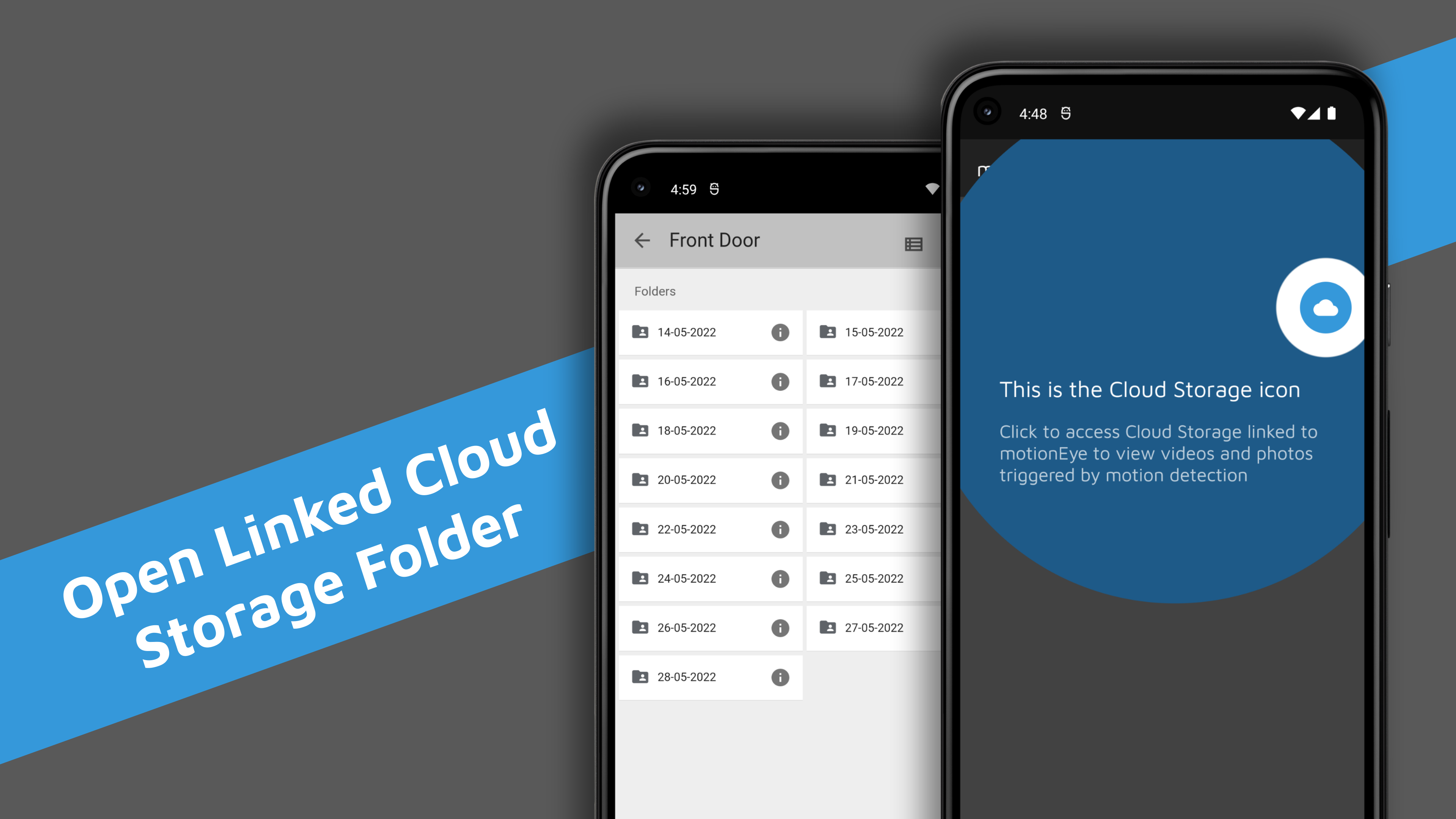 - View and download motion-triggered videos or photos stored on Google Drive¹ or any other linked cloud storage.