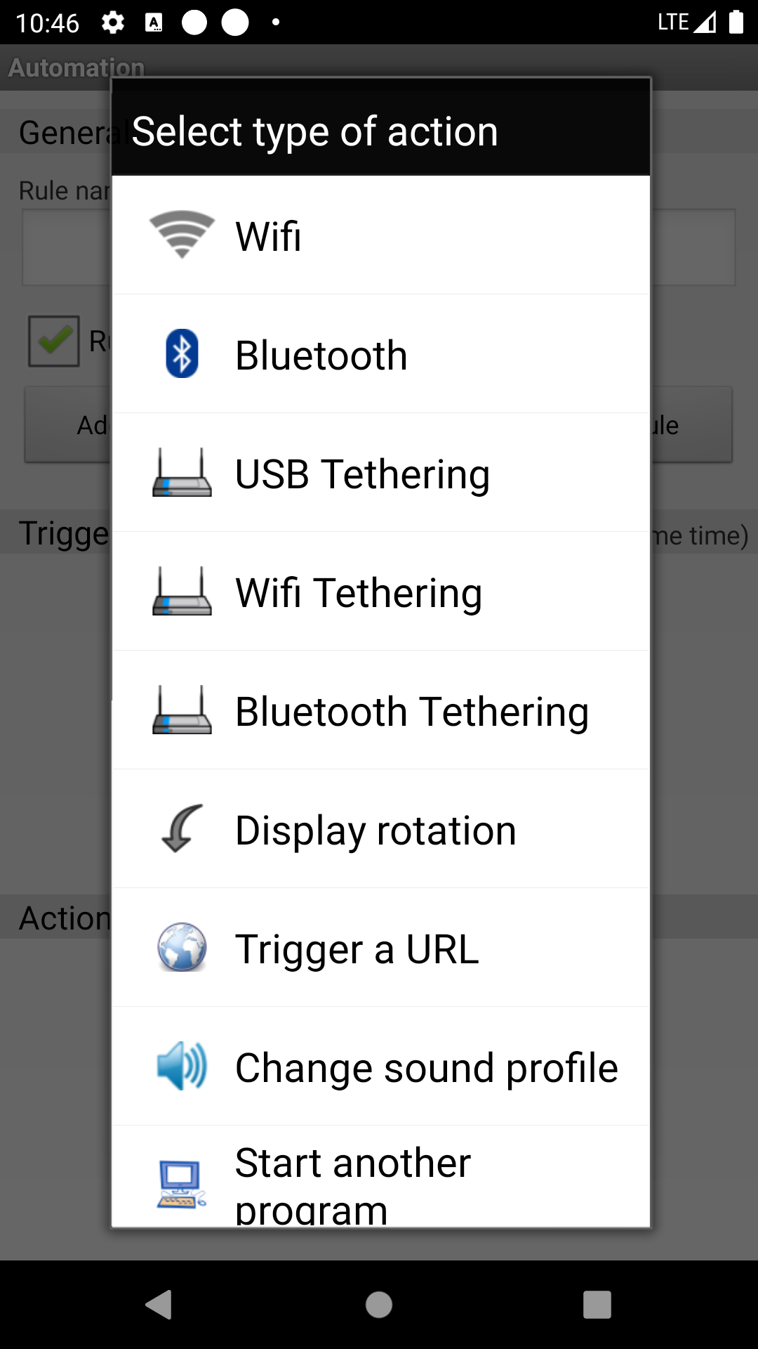 Create rules that are made of triggers and actions. A prominent example would be something like "Mute phone at work".