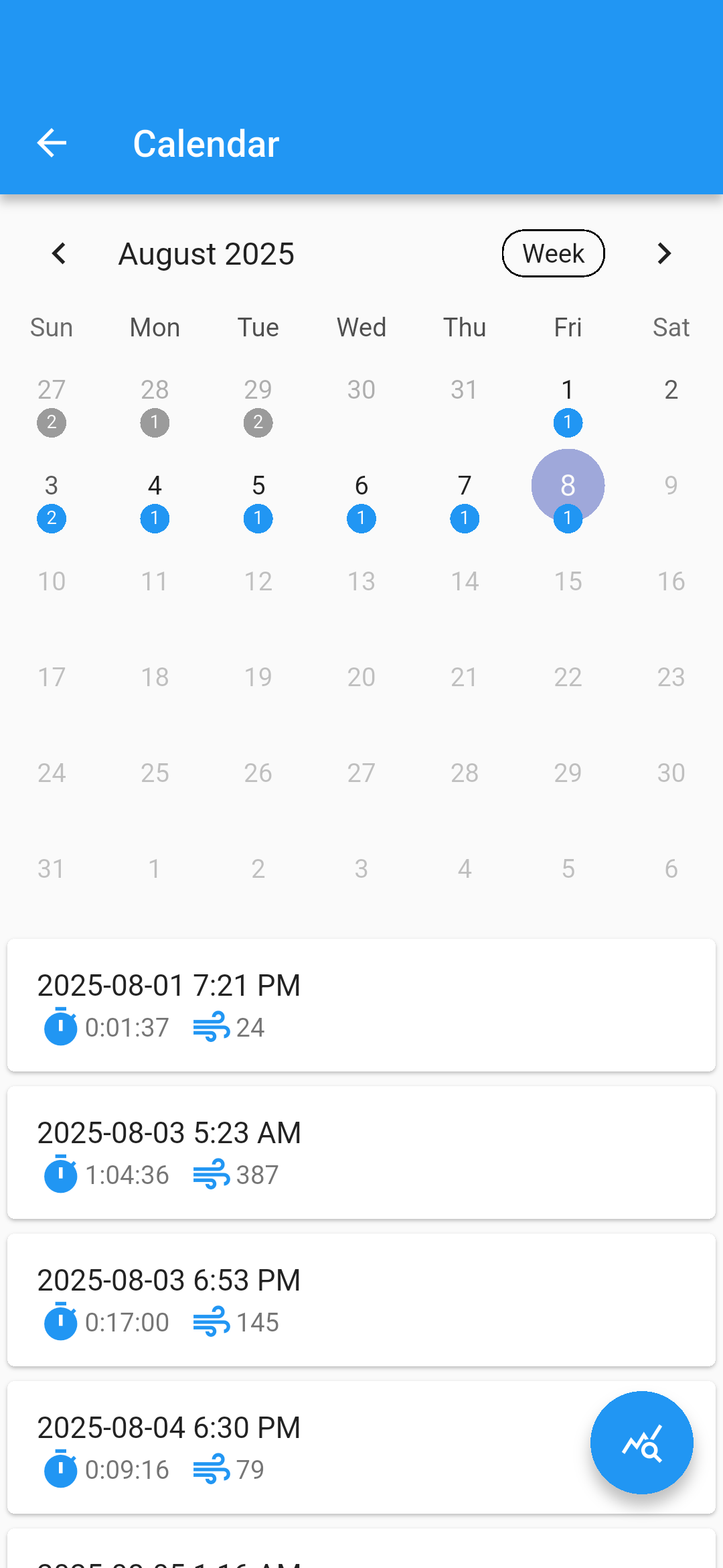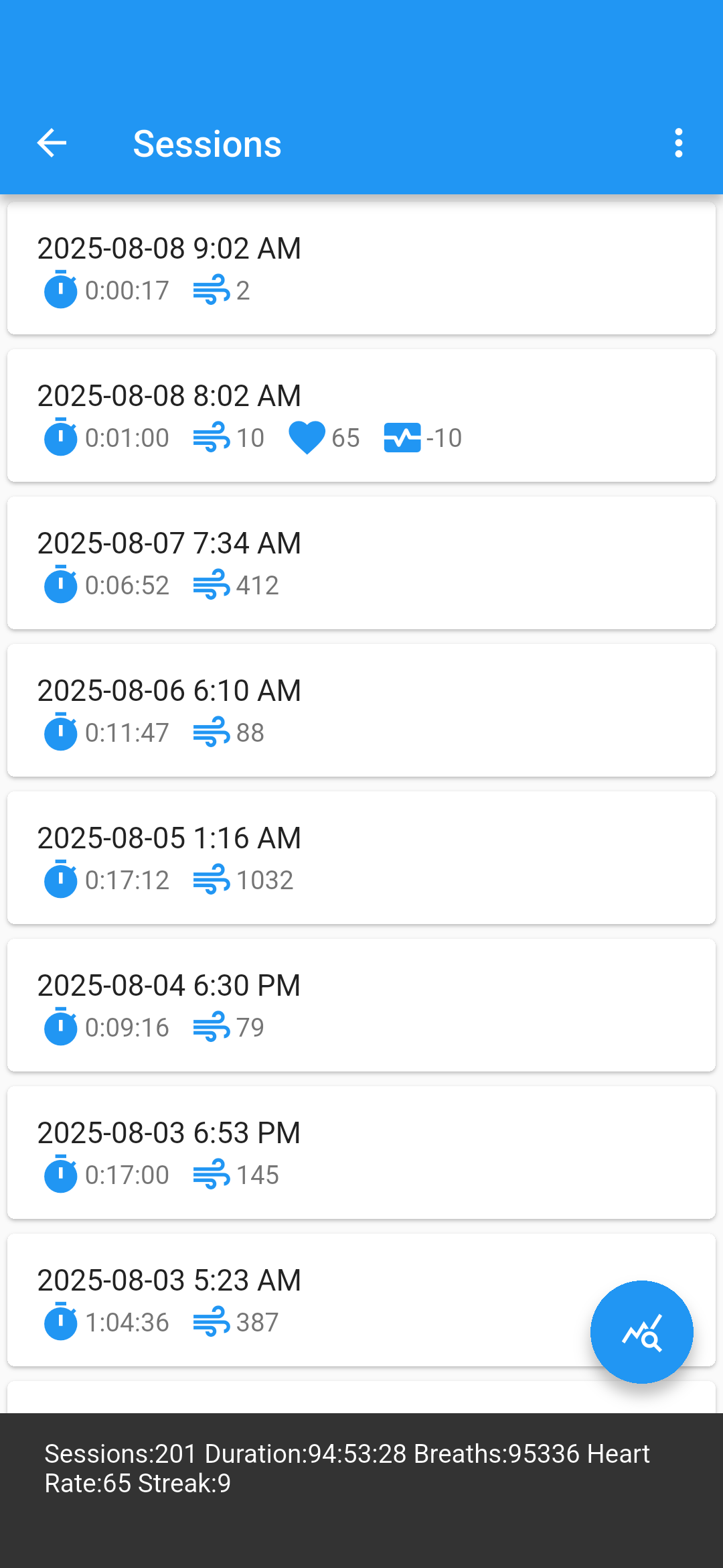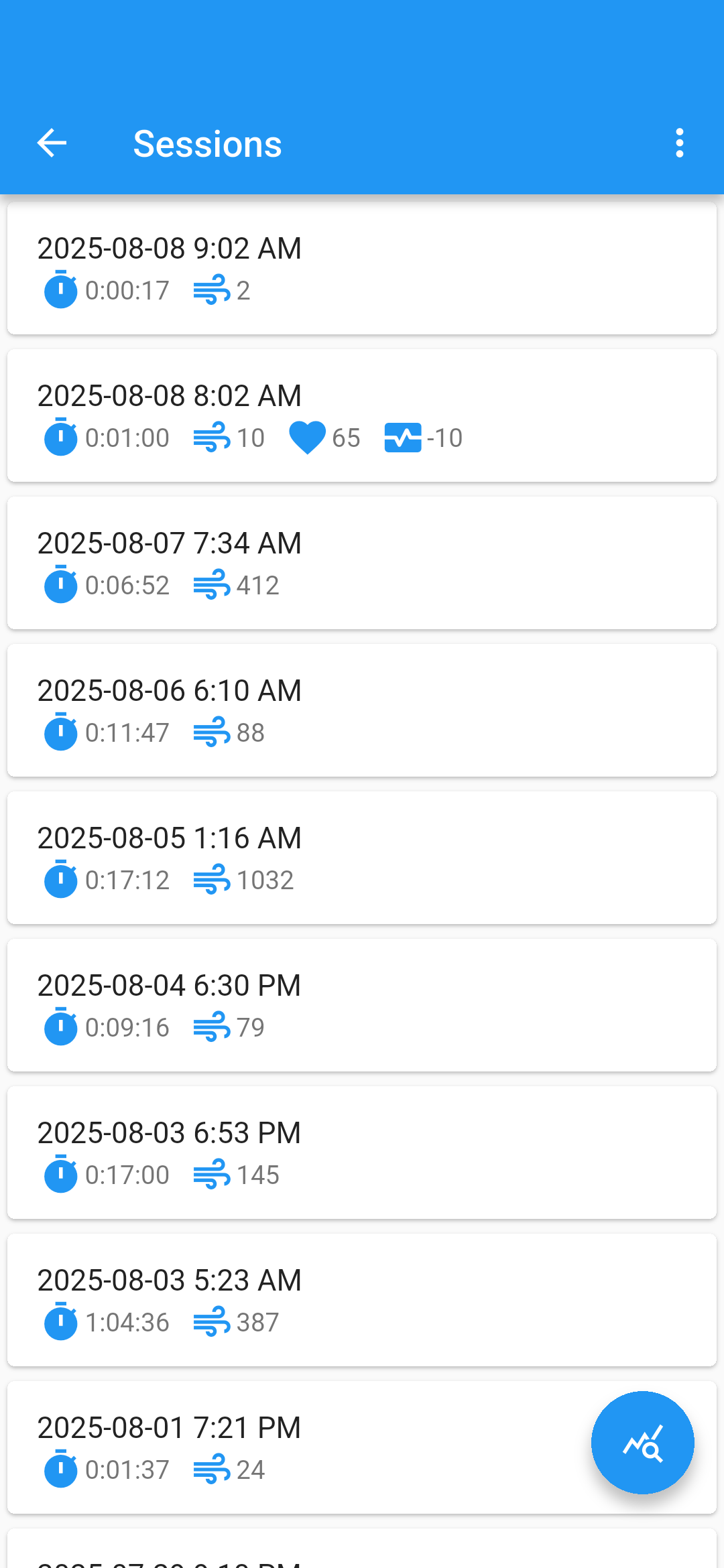 Brethap is yet another meditation app (yama). Including a timer for meditation, it also allows you to configure a breathing pattern for you to follow. Your sessions will be saved, allowing you to monitor and view stats about your progress in either a list or calendar view. Duration, breath and other options are configurable through saved preferences. Breathing technique presets include 4-7-8, physiological sigh, among others.