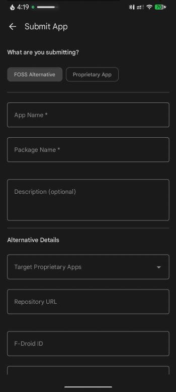 All app scanning happens locally on your device. The app only queries the database for FOSS alternatives when proprietary apps are detected.