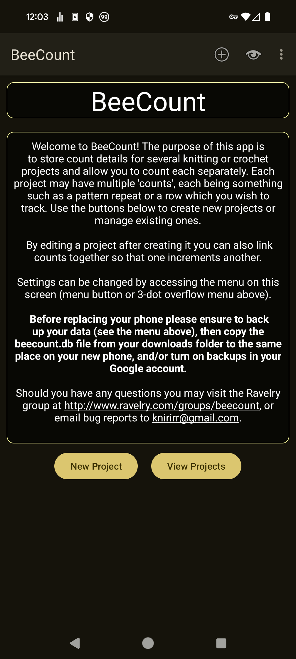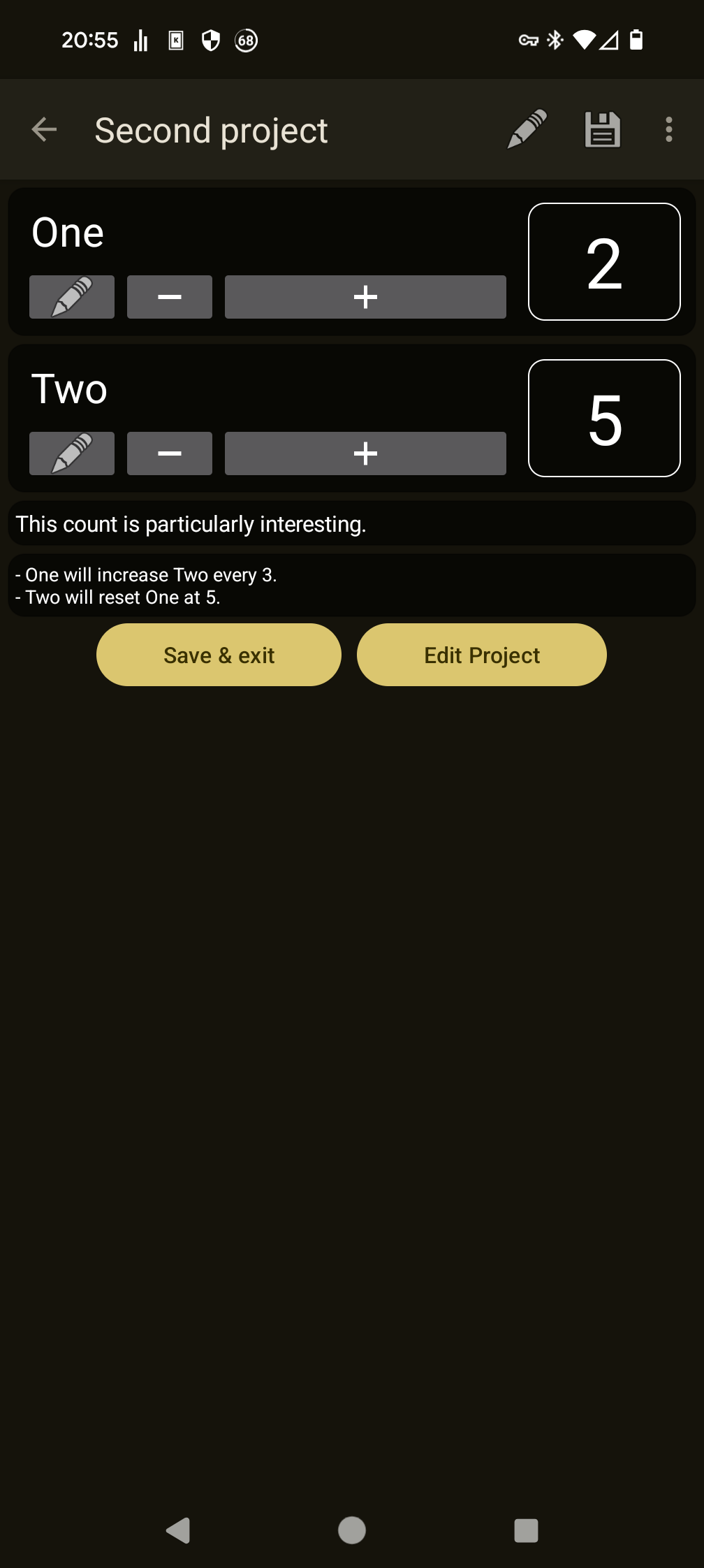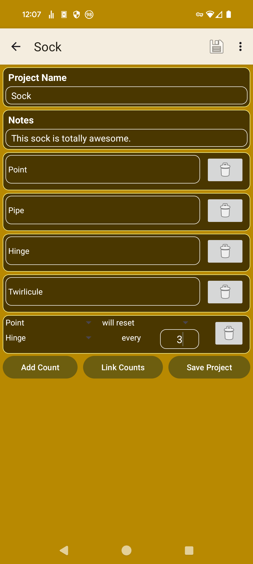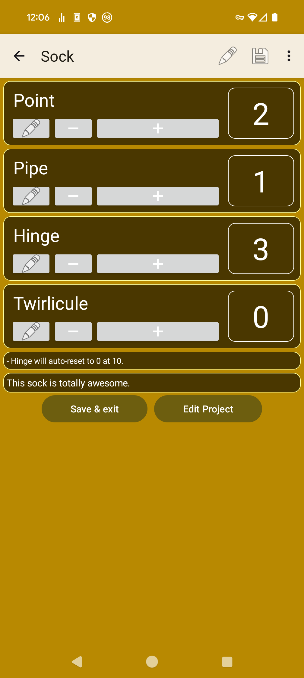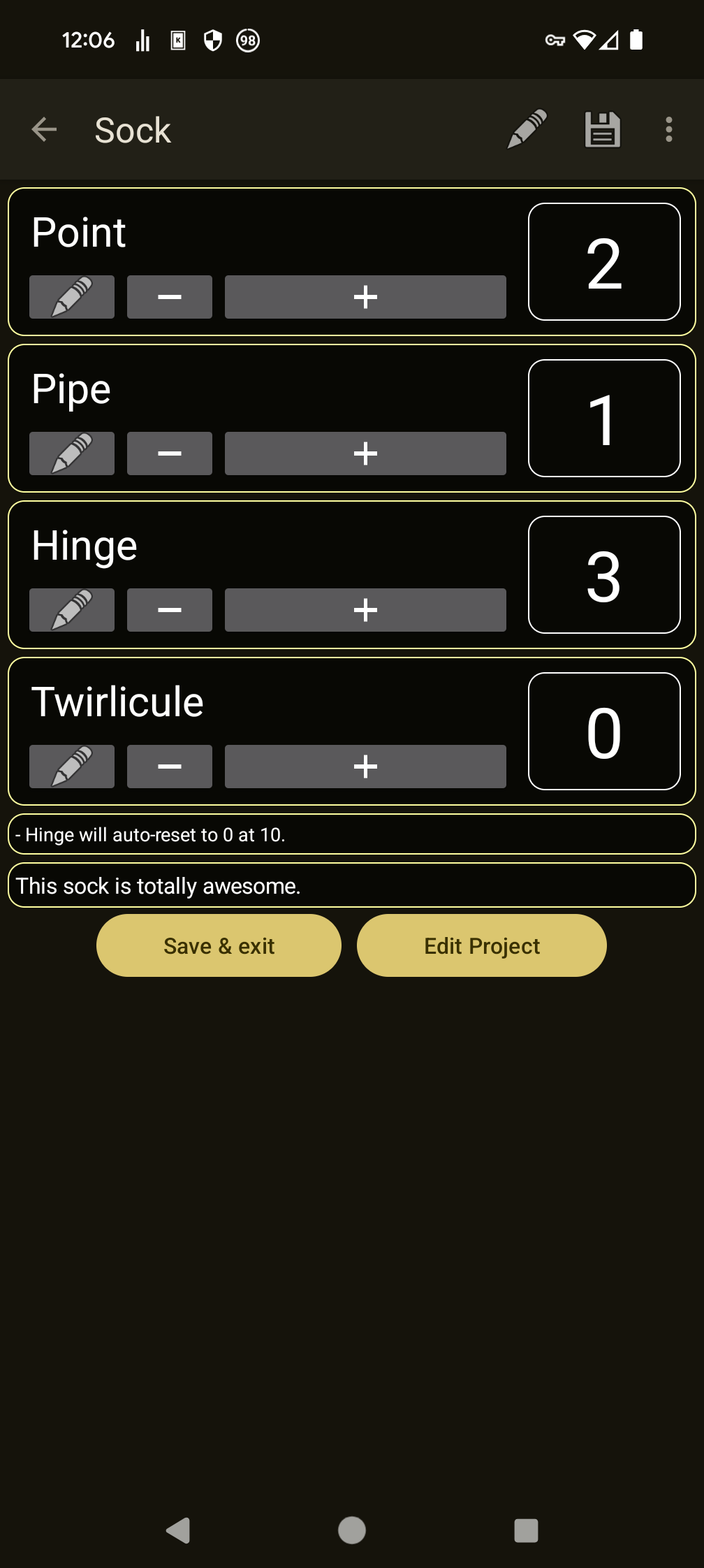 * Keep track of several knitting projects.