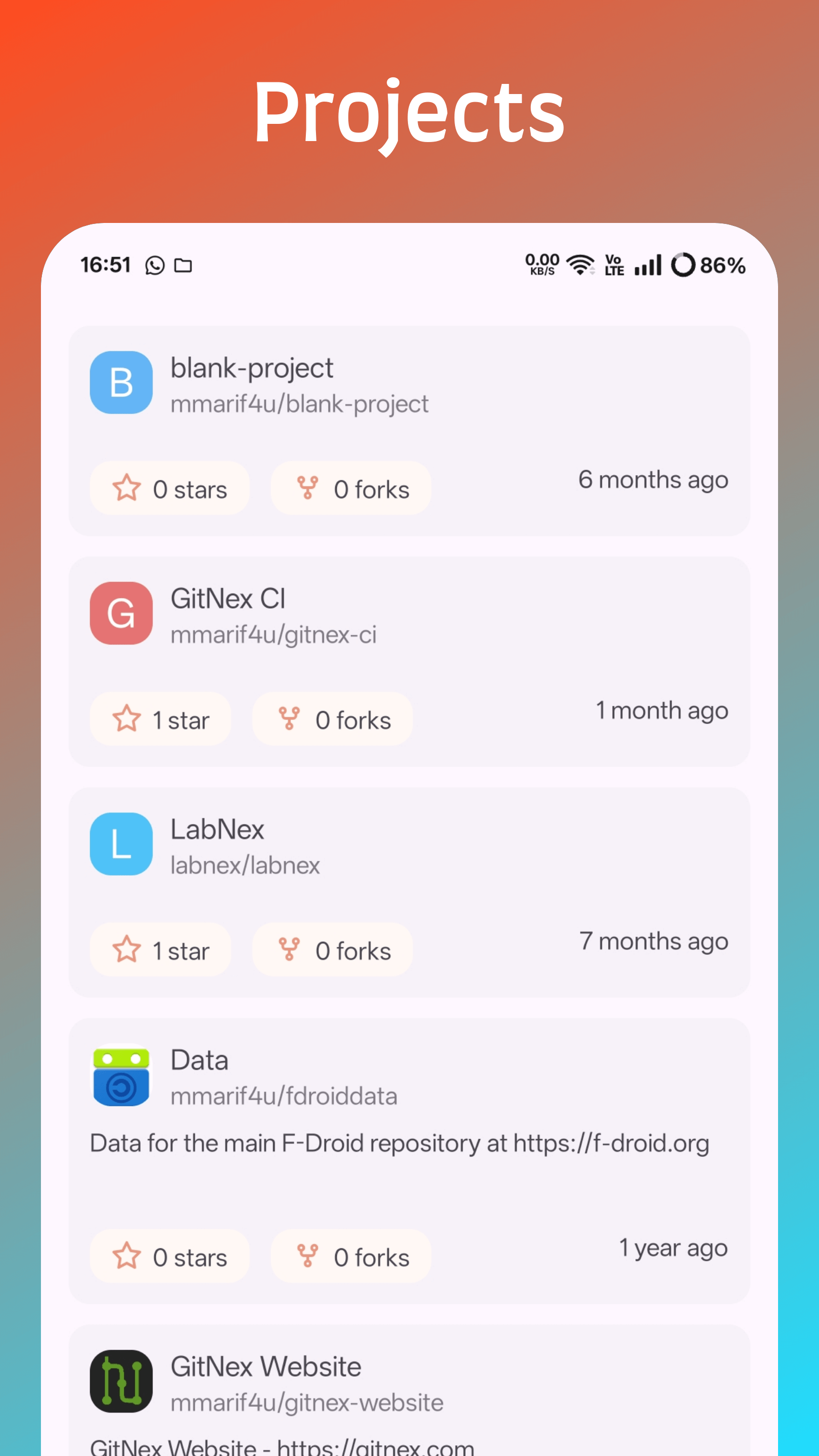 - Starred project listings