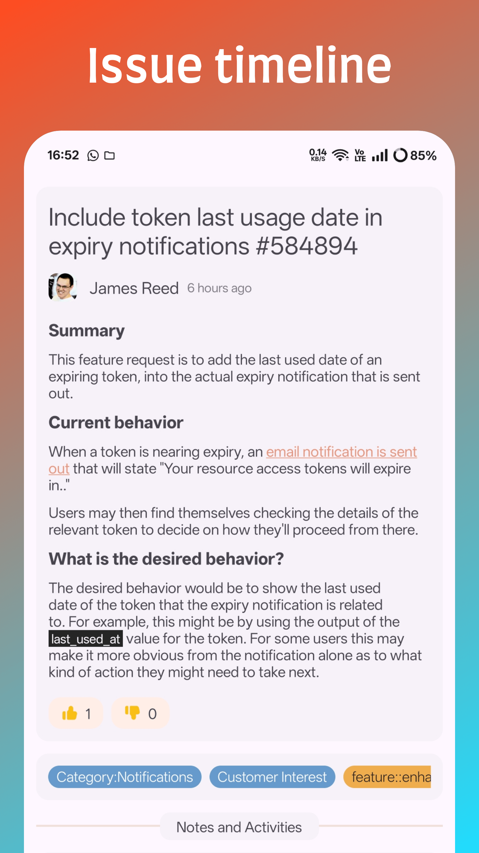 - Issue notes and activities