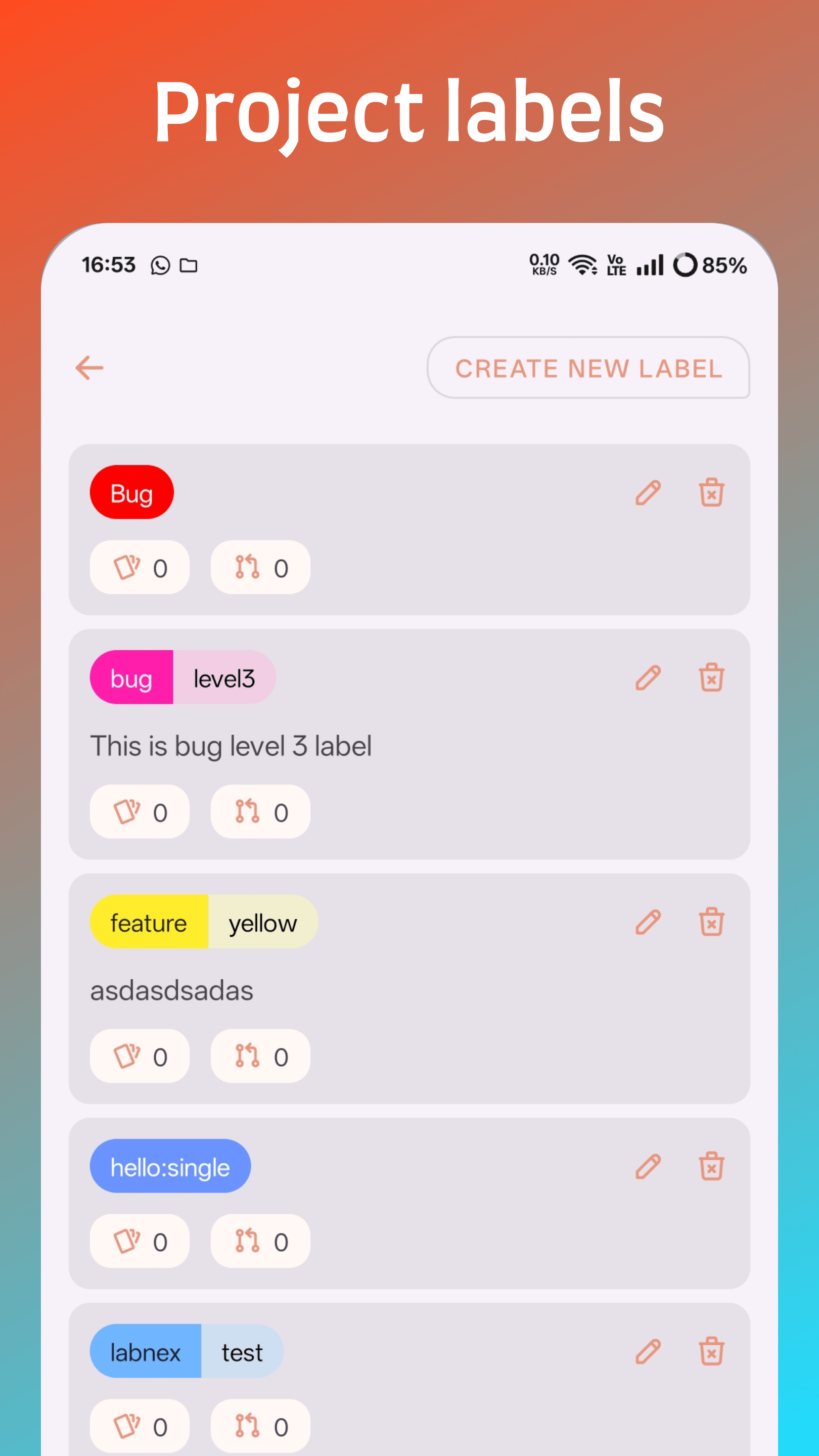 - Project labels listing