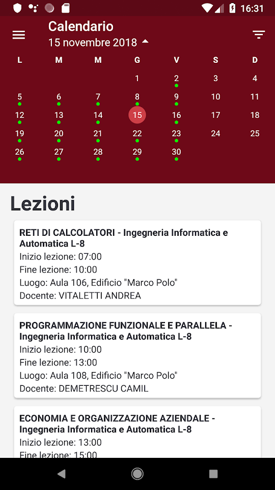 * See a calendar with date of exams and lessons all in one place.